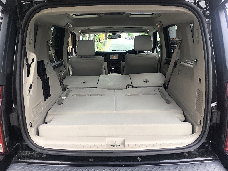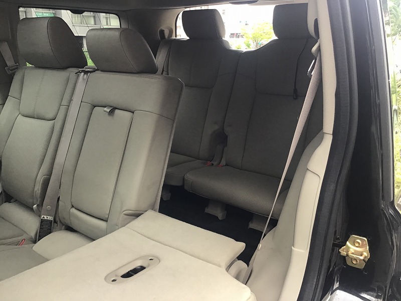 3列目のシートを倒せば広いラゲッジスペースになり、キャンプや釣りその他アウトドアスポーツのグッズをたくさん載せられる便利な1台です♪