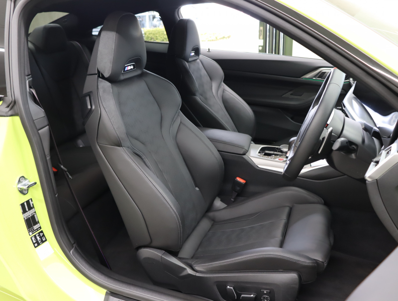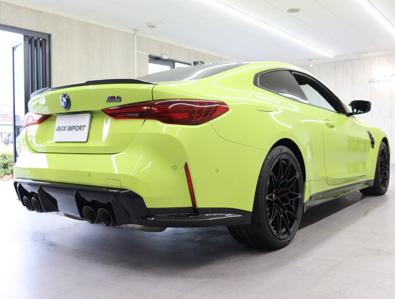 2025y BMW M4 Competition M xDrive クーペ 純正サンパウロイエロー/ブラックレザーシート 正規ディーラー車 禁煙1オーナー 新車保証継承 右H 取説・記録簿付 事故歴無 試乗可能 全国販売・全国納車可能 納車整備(消耗品含) 3ヶ月/3,000km保証付販売