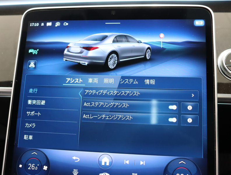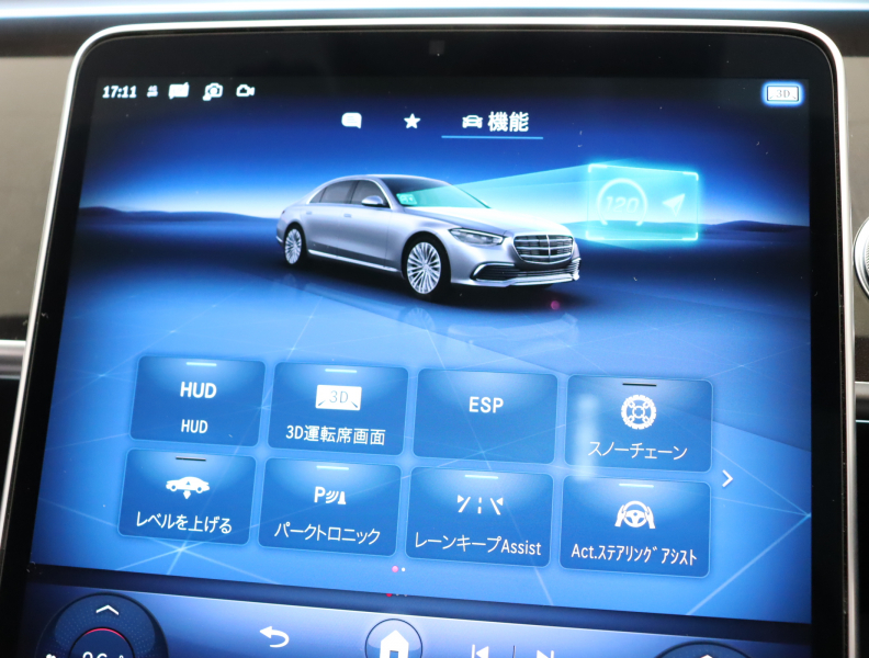 ●AIRマティックサスペンション ●リア・アスクルステアリング ●マルチファンクションステアリング(パドルシフト付) ●ダイレクトステアリング ●DIRECT SELECT(ダイレクトセレクト) ●クルーズコントロール&可変スピードリミッター ●電動パワーステアリング ●電動チルト&テレススコピックステアリング ●ボタン式パーキングブレーキ ●イージーエントリー[ステアリング・シート] ●電動調整・可倒式ヒーテッド・ドアミラー(ウインカー・足元照明内蔵) ●リバースポジション機能付ドアミラー[助手席側] ●自動防眩ルームミラー&ドアミラー[運転席側] ●12.3インチコックピットディスプレイ[メーターパネル] ●ヘッドアップディスプレイ ●レインセンサー ●オートライト ●外気温度計 ●ワンタッチパワーウィンドウ(挟み込み防止機能付) ●照明ミラー付サンバイザー ●カップホルダー ●コンパートメントボックス[後席中央] ●シートバックポケット ●イルミネーテッドステップカバー[前席] ●乗降用ライト ●12V電源ソケット[前席・トランクルーム] ●アンビエントライト(64色) ●リーディングライト[後席] ●リモート・トランクリリース ●フットトランクオープナー ●キーレススタート ●キーレスゴー ●イモビライザー ●自動開閉トランクリッド ●クロージングサポーター[ドア・トランクリッド] ●ECOスタートストップ機能 ●バレーパーキング機能 ●ワイヤレスチャージング[前席] ●タイヤフィットキット