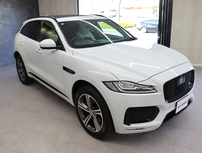 ジャガー F-PACE S セレクトパック ブラックパックS 黒×白革 Meridianサウンド 純正ナビ TV 360°カメラ CarPlay ステアリングヒーター シートヒーター ベンチレーション リア電動リクライニング ACC LKA パワーテールゲート LEDヘッドライト 20インチAW
