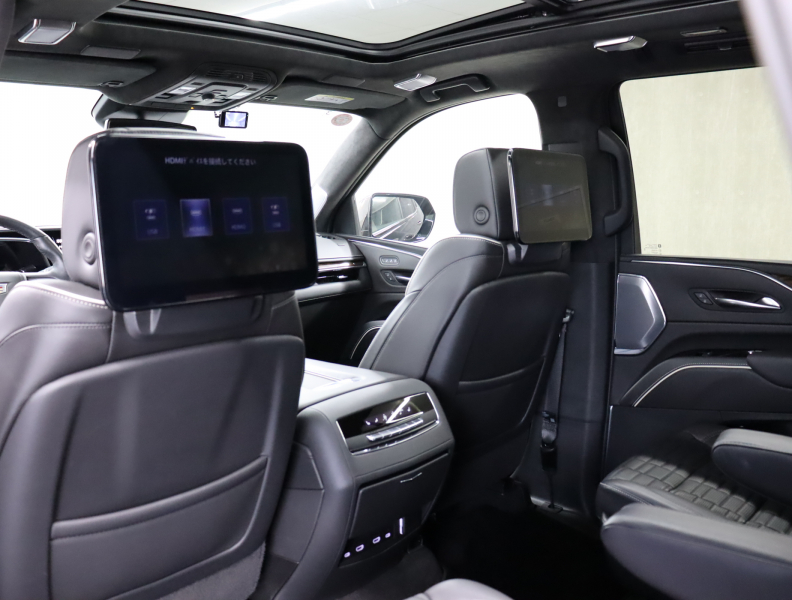 ●新世代キャデラックユーザーエクスペリエンス 38インチカラー高精度・高解像度有機ELディスプレイ (7.2in+14.2in+16.9in)タッチスクリーン式/AM/FMラジオ、 ● ● Bluetooth(電話 ® /オーディオ接続機能)、SMS機能、 Apple CarPlay®、Android Auto®対応/ロータリーコントローラー●AKG Studio Referencesシステム(28チャンネル36スピーカー)●車内コミュニケーションシステム●後席エンターテインメント(12.6in独立タッチデュアルHD ディスプレイ/リモートコントロール/外部入力端子:HDMI x2/ ● ● 2チャンネルワイヤレスヘッドフォン x 2付)●DR(自律航法)マップマッチング対応クラウドストリーミングナビ