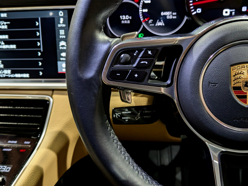 ポルシェ パナメーラ 3.0 V6 ベージュレザーシート シートヒーター エントリードライブ PASM デジタルインナーミラー ブラックペイント19インチAW スポーツデザインミラー