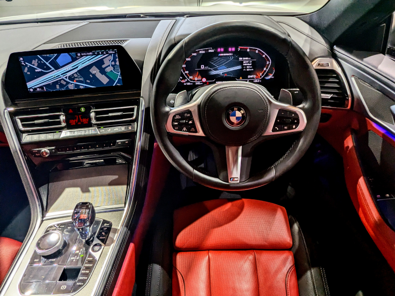 BMW 8シリーズ M850i xDrive coupe エクステンドレッド×ブラックメリノレザー 受注生産Mカーボンファイバールーフ カーボンリップスポイラー HUD 20インチアルミホイール ハーマンカードンサウンド