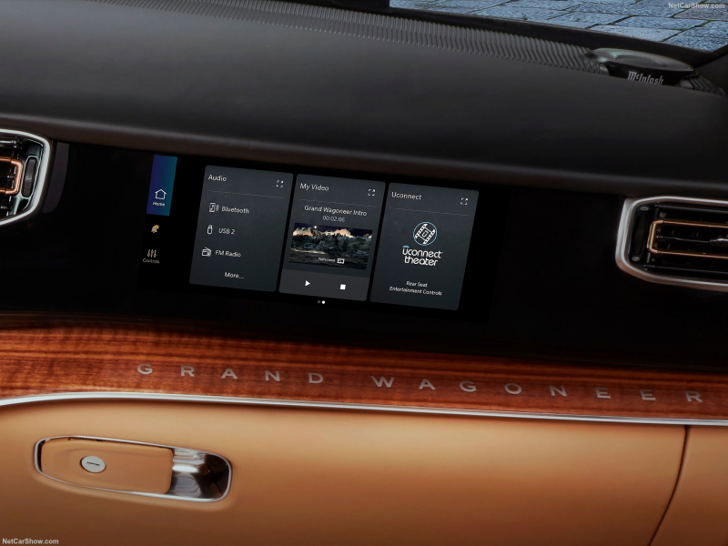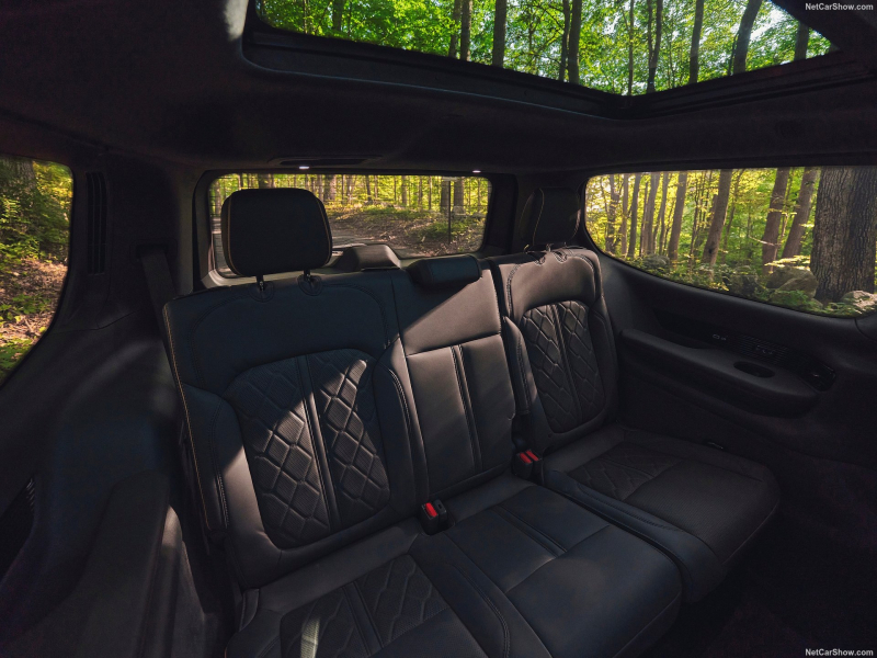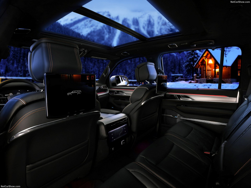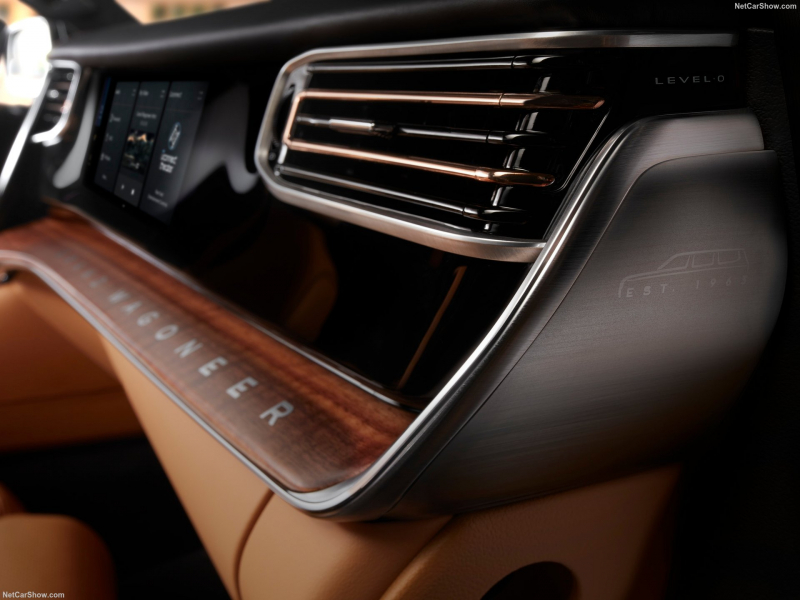 インテリアは、ハイエンドオーディオ愛好家のリビングルームも羨むような、革、木材、そしてテクノロジーの組み合わせです。 ダークルビーレッドパレルモレザーのシートで装飾され、背景にはダークワックスウォルナット材が使われており、これが無菌のテスラカプセルではなく、やはりジープであることを思い出させてくれます。