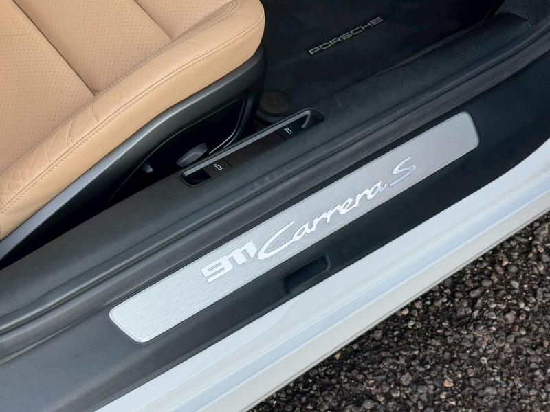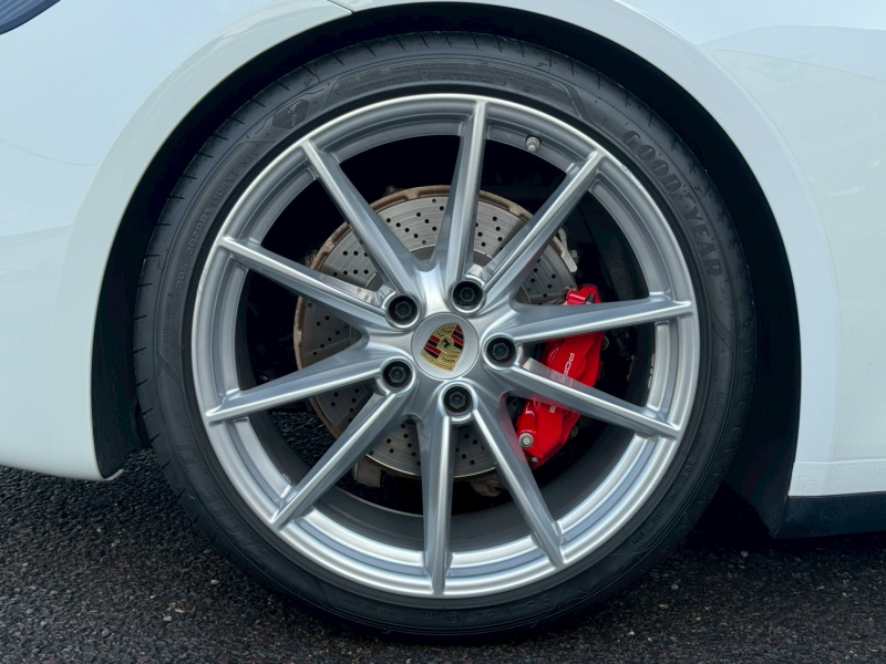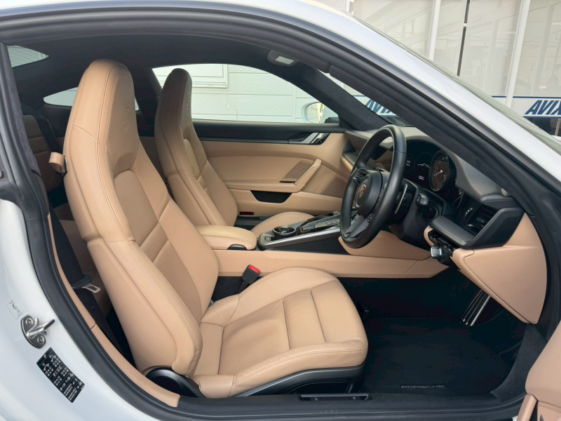 ホワイトのボディにベージュレザーインテリアを組み合わせた、911らしい品のある佇まいが印象的な一台です。