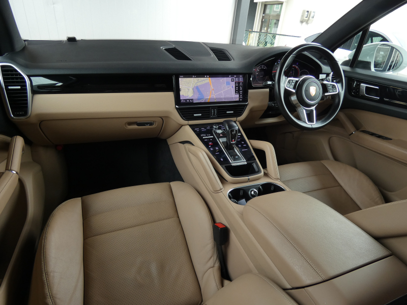 安心の右ハンドル、正規ディーラー車!! 取説・記録簿付 もちろん事故歴ありません!! 綺麗な外装色ホワイトにLEDヘッドライト&純正20インチアルミホイールが装備され迫力あるエクステリアを演出!! SUV特有の使用感はとても少なく心地良い禁煙の室内はお洒落なベージュレザーインテリア&快適なシートヒーター&ALPINEヘッドレストツインモニター付き!! 高解像度12.3インチタッチスクリーンを採用し、より一層使い勝手の良くなったPCMナビ(ポルシェコミュニケーションマネジメントシステム)&社外TV付き!! 運転操作をサポートするサラウンドビュー付パークアシストシステム、ACC(アダプティブクルーズコントロール)、LCA(レーンチェンジアシスト)が装備!! 340馬力を発揮するV6ターボエンジンと8速ATが相まってストレスの無いドライビングを可能とします!! カイエンをお探しの方は是非お急ぎ下さい!!