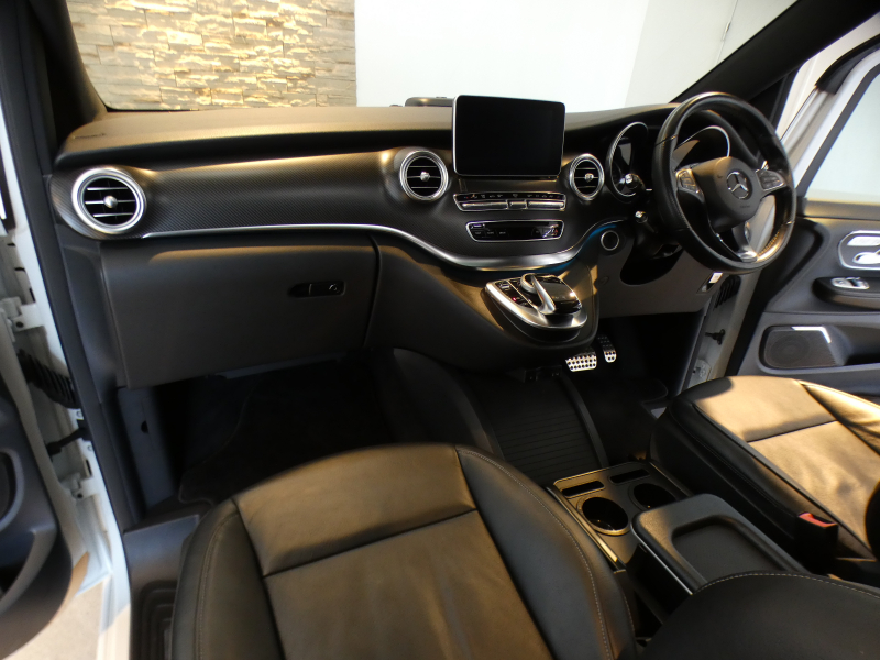 スポーツロング専用エクステリアを身に纏いより一層美しさを際立たせた専門店ならではの1台!! 綺麗なロッククリスタルホワイト!! 安心の右ハンドル&正規ディーラー車!! 取説・記録簿付 事故歴ありません Vクラス特有の使用感はとても少なく余裕のロングボディー&便利な7人乗り!! 高級感漂うブラックレザーインテリア!! 先進装備レーダーセーフティーパッケージ(ブラインドスポットアシスト・ディストロニックプラス・レーンキーピングアシスト)&パノラミックスライディングルーフ等豪華装備満載です!! 今、話題のクリーンディーゼルエンジンと電子制御7速ATが軽快な走りを演出してくれます!! 純正HDDナビ(ミュージックレジスター)・地デジ・360°カメラ・ETC&後席ツインモニター&Burmesterサウンド&専用AMG19インチアルミホイール付!! 税金面においても経済的で初めての方にもおすすめです 品質・価格共に自信あります!! 実用性と先進性を兼ね揃えた人気車輌をお届け致します!!