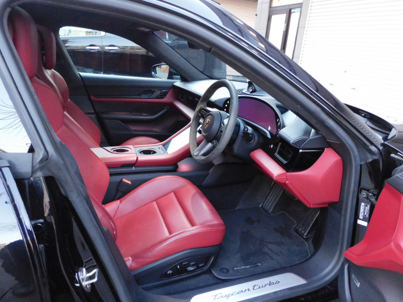 ポルシェ タイカン Turbo 右H正規D車 スポクロ パノラマ 黒/ボルドーレッドツートンレザーインテリア シートヒーター&ベンチレーター 4ゾーンAC 4+1シート PCMナビ パッセンジャーD BOSE 全周C&PAS ACC&LCA&LKA LEDマトリックスHL PASMエアサス エレクトリックSサウンド Pバッテリー+ PSCB 純正21AW 禁煙 1オナ