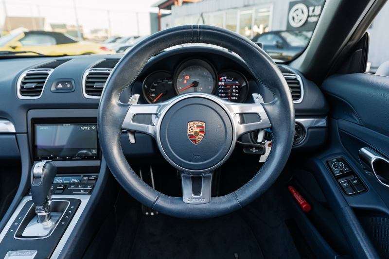 ポルシェ ボクスター(Type981) S ヨッティングブルーハーフレザーシート シートヒーター ブルーソフトトップ カロッツェリアナビ フルセグTV CarPlay Bカメラ PDLS スポーツデザインステアリング 電動Dミラー オートA/C ケイマンS19AW 2年保証