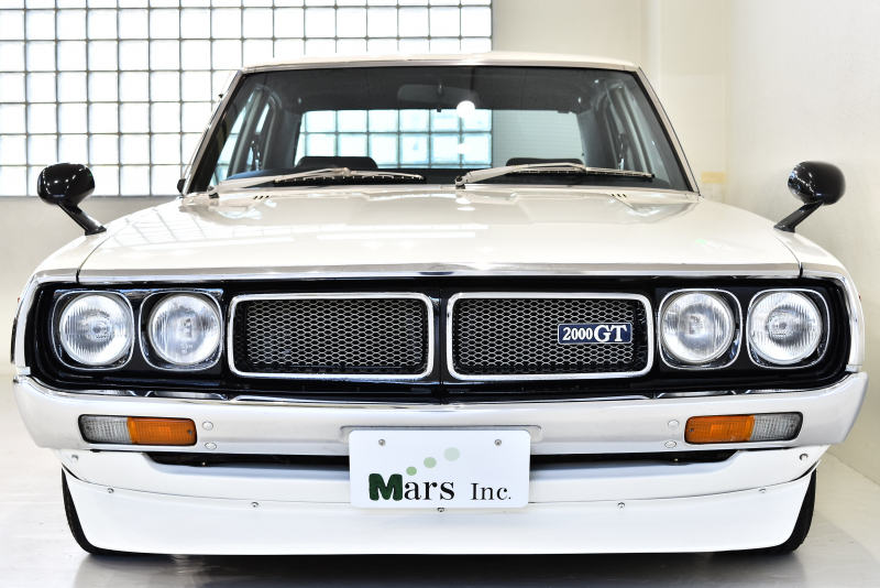 ニッサン・スカイライン「2000GT」の入庫でございます!1972年9月に誕生した4代目ニッサンスカイラインは歴代スカイライン史上最多となる約67万台の販売台数を記録したクルマ!ご存じ、コマーシャルにおけるフレーズ「ケンとメリーのスカイライン」から「ケンメリ」の愛称でも知られております!スカイラインはブルーバードとセドリック/グロリアの間に位置する中型の基幹車種であり、ボディタイプは4ドアセダン、2ドアハードトップ、ワゴン、バンが存在。エンジンに直列4気筒のL16型とL18型を搭載したいわゆるショートノーズと、直列6気筒のL20型を搭載したロングノーズの「GT」2タイプが存在、後に直6DOHCのS20型エンジンを搭載したGT-Rが登場。こちらの車両は2015年にL28エンジンへと換装され、公認取得済みとなります!もちろん、「三種の神器」SOLEX・タコ足・デュアルマフラーの「ソレ・タコ・デュアル」を装備!RSワタナベ14インチホイールもきまり、王道のカスタムがなされております!非常に程度の良い「ヨンメリ」是非お早めにお問合せください!