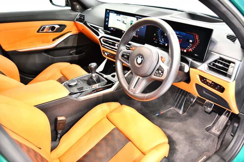 BMW「M3」セダン、6速マニュアルモデルの入庫でございます。鮮やかな「アイルオブマングリーン」に「キャラミオレンジ」が採用されたインテリア!カーボンルーフも与えられ、セダンモデルながらスポーティー要素を存分に楽しめる個体となっております!2024年にファイナルエディションが発表され、現在MTモデルは選択不可!市場でも数少ないMT車!新車保証も残存し今後も存分にお楽しみ頂けます!是非お早めにお問合せくださいませ!