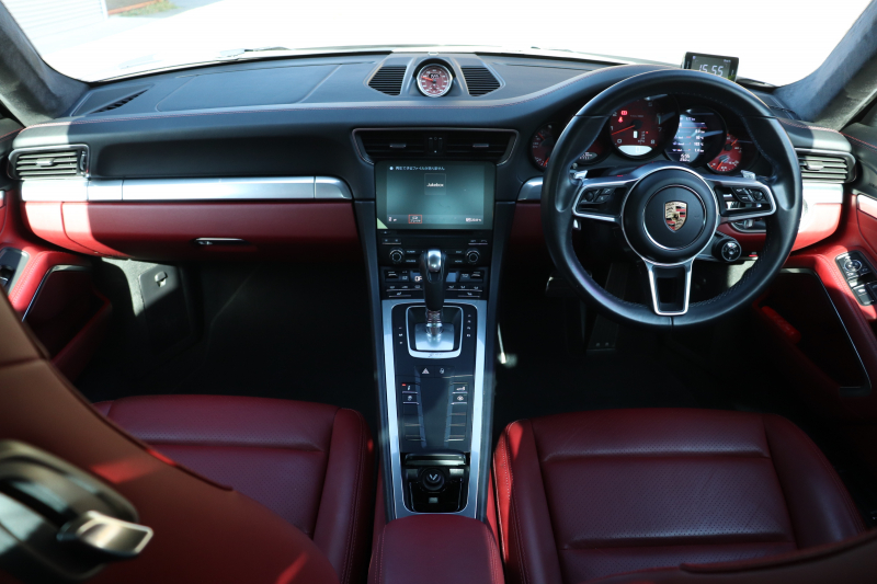 30,000km走っているカレラSの赤内装でこの状態というのは、丁寧に乗られてきた事が伝わります。記録簿の枚数だけでなく、内外装のコンディションにそのままにじみ出ています。ボディやホイールの状態、シート、ステアリングなど、乗り手の丁寧さが正直に残る個体です。