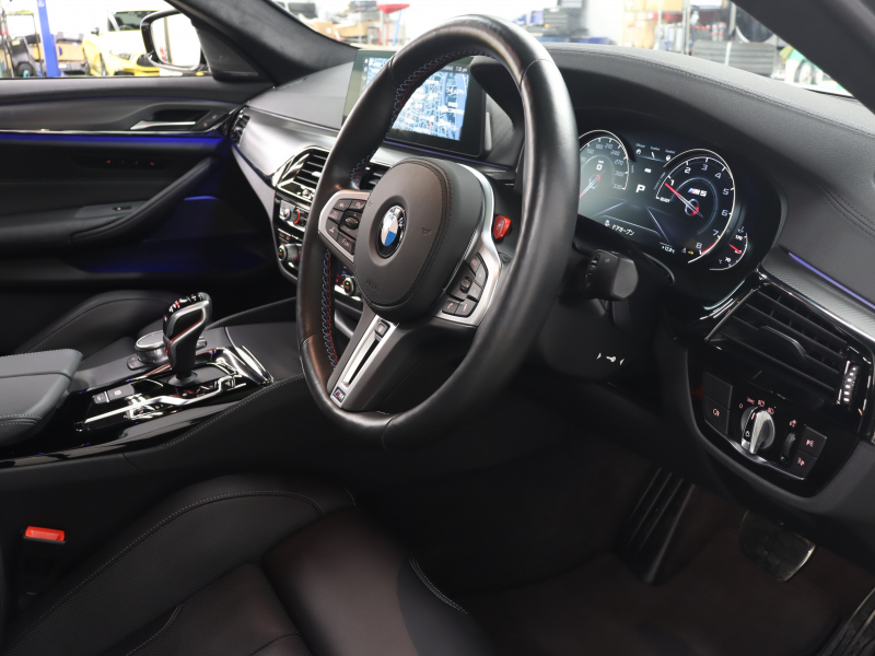 BMW Mシリーズ M5 インテリジェントセーフティ 黒革 ベンチレーター カーボンルーフ Idriveナビ TV 360カメラ harman/kardon ワイヤレスチャージング HUD Mスポーツステアリング Mエキゾーストシステム Mマルチファンクションシート Mエアロ&20インチダブルスポークAW(スタイリング706M) 2年保証