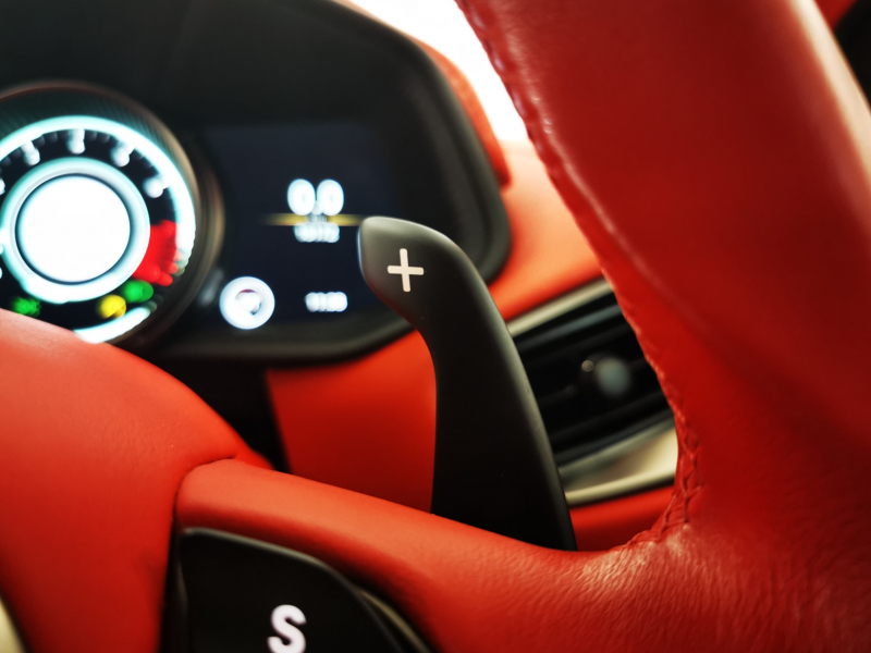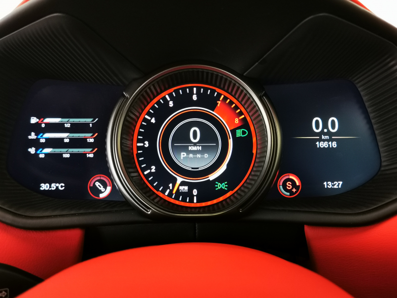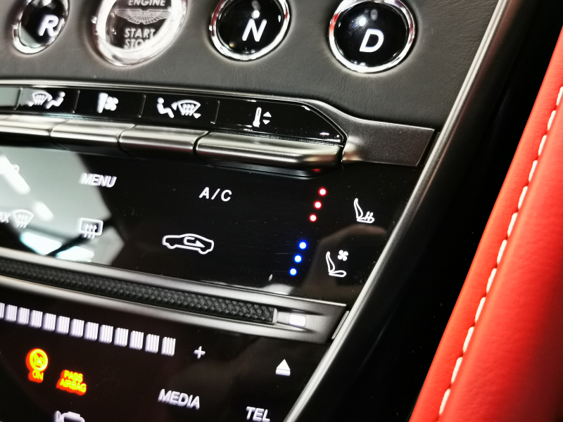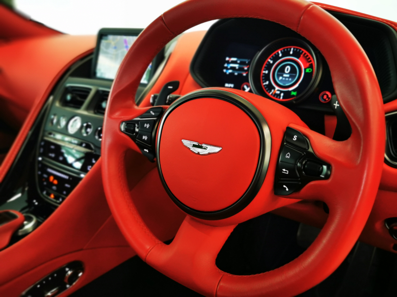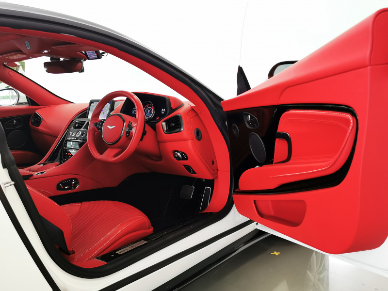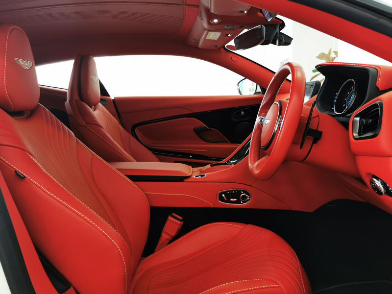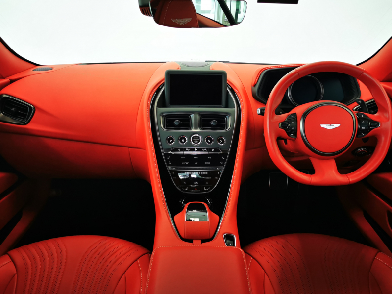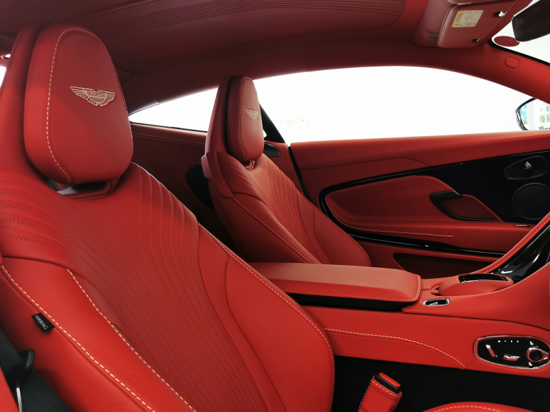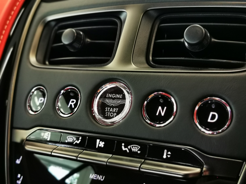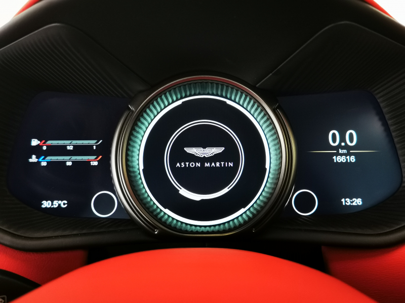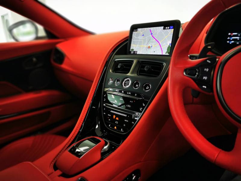 ドアを開ければ情熱的なスパイシーレッド一色に染められたインテリアがお出迎え。アストンならではの上品なレザーの香りも相まって、乗り込んだだけでワクワクが止まりません。