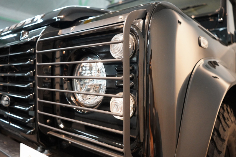 ランドローバー ディフェンダー 110 XS AT換装 純正LEDヘッドランプ 純正サイドステップ サントリーニブラック