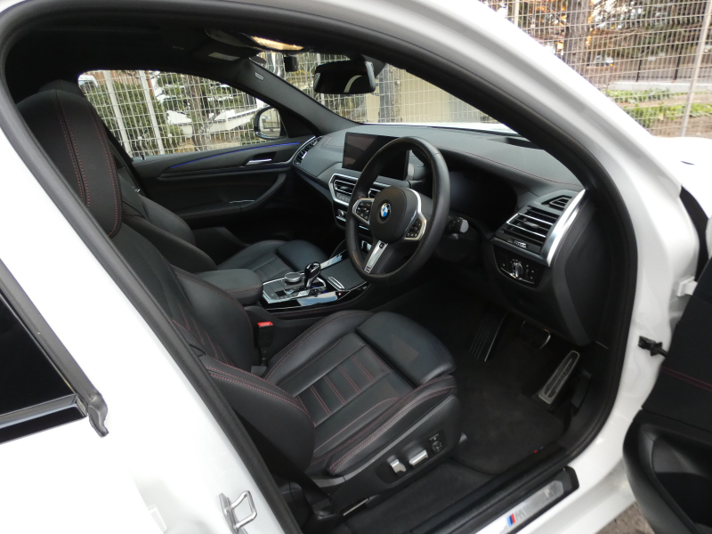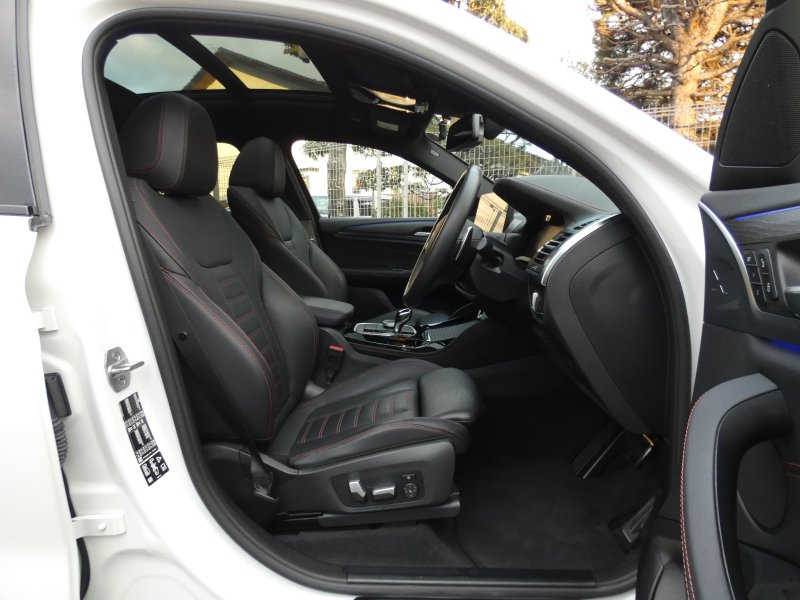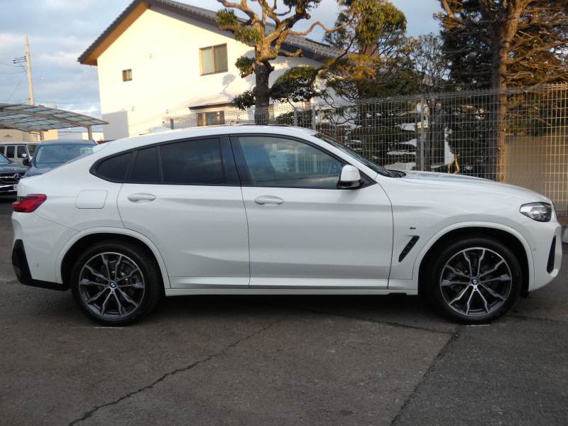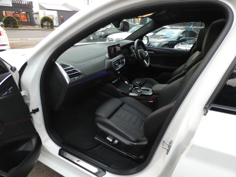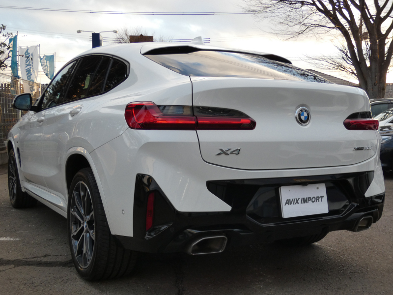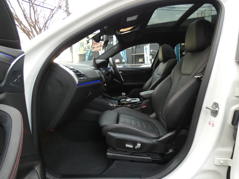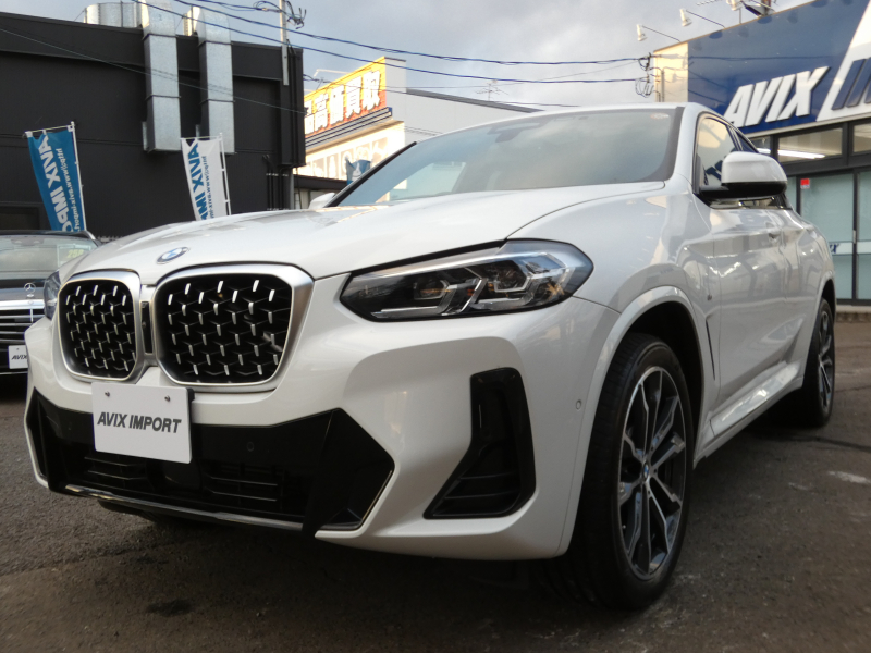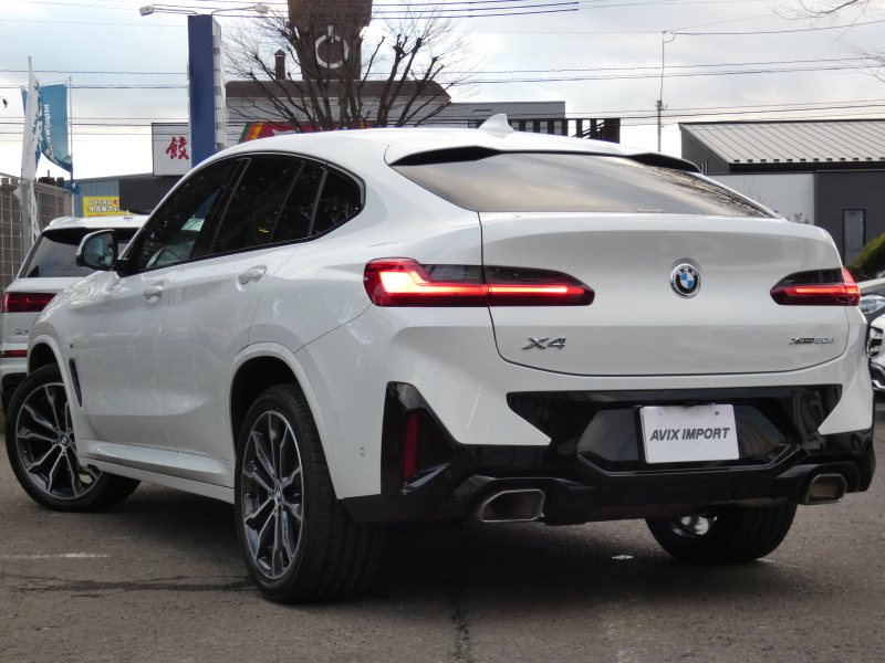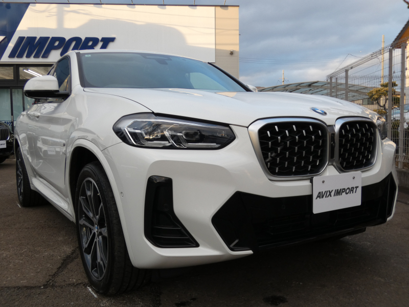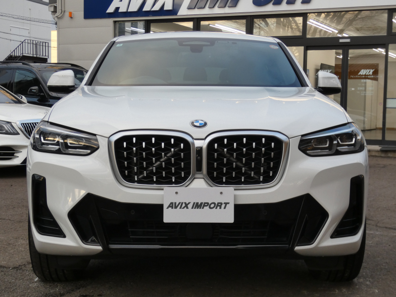 洗練された後期、現行モデル!! ワンオーナー 取説・記録簿付 事故歴ありません!! 綺麗な外装色アルピンホワイトにひときわ目を惹くMスポーツ専用エクステリア&純正オプション20インチアルミホイールが装着されお洒落なエクステリアを演出!! SUV特有の使用感はとても少なく室内は高級感漂うブラックレザースポーツシートに快適な全席シートヒーター&3ゾーンエアコン、さらにはステアリングヒーターや開放感有るパノラマガラスサンルーフもオプション装備!! i-Driveナビに使い勝手の良いジェスチャーコントロールがオプション装備され、運転操作をサポートするパーキングアシストプラス&ヘッドアップディスプレイにドライビングアシストプラスが完備!! DOHC直列4気筒ディーゼルターボエンジン&電子制御8速スポーツATにMスポーツ専用サスペンションが相まってストレスの無いドライビングを可能とし、アイドリングストップ機構が燃費向上を実現!! 税金面においても経済的で初めての方にもおすすめです!! G02型 X4をお探しの方は是非お急ぎ下さい!!