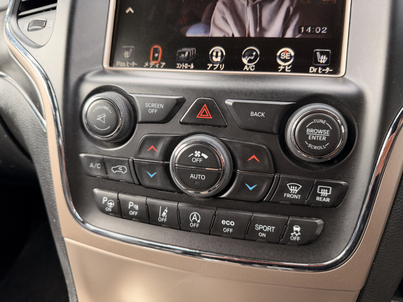 ジープ グランドチェロキー リミテッド 4WD 禁煙車 スライディングルーフ エアサス 全席シートヒーター メモリー付電動運転席シート スペアタイヤ パワーテールゲート デジタルTV AUX Bluetooth 純正18インチAW ACC アイウエアケース 走行モード切替