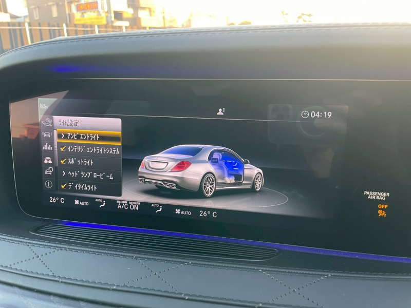 ●ナイトビューアシストプラス●ラグジュアリーヘッドレスト(後席)●AIRマティックサスペンション●AMG RIDE CONTROLスポーツサスペンション●AMG強化ブレーキシステム●チタニウムグレーペイント20インチAMGクロススポークアルミホイール●パノラミックスライディングルーフ●S63専用AMGスタイリングパッケージ(フロントスポイラー・サイド&リアスカート)●赤外線反射ノイズ軽減ガラス●AMGデュアルツインクロームエグゾーストエンド●AMGスポーツエグゾーストシステム●フルレザー仕様(DINAMICAルーフライナー付)●本革巻ステアリング●エクステンテッドウッドインテリアトリム●designoブラックアッシュウッドインテリアトリム●ステンレスアクセル&ブレーキペダル●シートヒータープラス●シートベンチレーター●マルチコントロールシートバック●ドライビングダイナミックシート●リラクゼーション機能●AMGスポーツシート●AMGスポーツステアリング●メモリー付パワーシート(後席)●シートヒーター(後席)●シートベンチレーター(後席)●電動シートバック(後席)●助手席コントロール機能(後席)●ヘッドレストクッション(後席)●ラグジュアリーアームレスト(後席)●IWC INGENIEURデザインアナログ時計●AMGダイナミックセレクト●AMGスピードシフトMCT●ヘッドアップディスプレイ●AMGメーターパネル●クロージングサポーター●マジックビジョンコントロール●ヒーテッドウィンドウウォッシャー●電動ブラインド(後席左右・リアウィンドウ)●盗難防止警報システム●イルミネーテッドステップカバー●エアバランスパッケージ●後席専用クライメントコントロール●Burmesterサラウンドサウンドシステム
