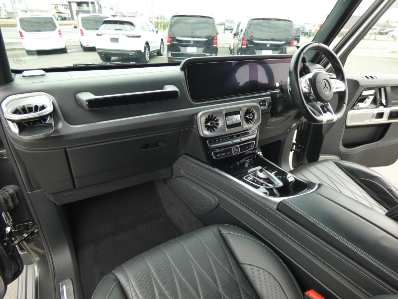 AMG Gクラス G63 AMGレザーエクスクルーシブPKG ナイトPKG仕様 アダプティブダンピングS ガラスSR 黒ナッパ革(ダイヤステッチ) ベンチレーター レーダーSF 純正HDDナビ地デジ360°カメラ Burmesterサウンド グリルガード AMG22AW 禁煙 正規D車