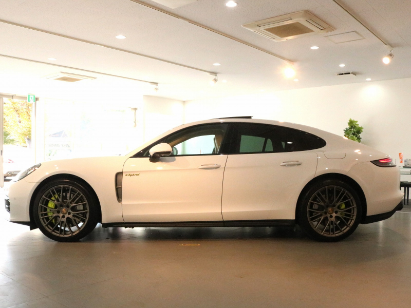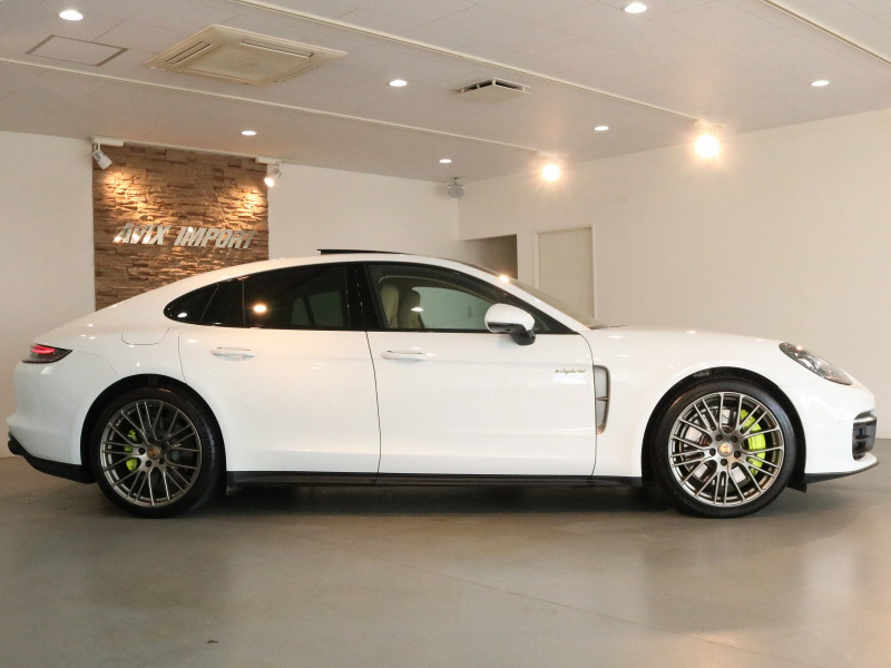 人気のプラグインハイブリッドモデルをベースに後期最終特別仕様プラチナエディションが組み合わされた希少な1台!! 安心の右ハンドル、正規ディーラー車!! ワンオーナー 取説・記録簿付 もちろん事故歴無く新車保証継承可!! 綺麗な外装色ホワイト!! 従来までオプション設定だったスポーツデザインフロントスポイラーが標準装備となった後期型エクステリアをベースにプラチナエディションならではの専用21インチエクスクルーシブデザインスポーツホイール(プラチナ塗装)やブラック仕上げスポーツテールパイプ&ハイグロスブラックサイドウインドウトリム、専用エクスクルーシブデザインテールライトが標準装備され、ハイブリッドモデル専用のアシッドグリーンカラーブレーキキャリパーがお洒落なエクステリアを演出!! 使用感の少ない心地よい禁煙の室内は鮮やかなブラック/ベージュツートンレザーインテリアにプラチナエディションならではの14Wayメモリー付パワーシート&全席シートヒーター、パノラミックルーフシステム、ブラッシュアルミニウムインテリアパッケージ(ブラック)、エンボス加工ヘッドレスト、BOSEサウンドシステム、GTスポーツステアリング(ヒーター付)に加えてハイブリッドモデルならではのスポーツクロノパッケージが標準装備!! 高解像度12インチタッチスクリーンを採用したPCMナビ(ポルシェコミュニケーションマネジメントシステム)搭載!! さらには運転操作をサポートするサラウンドビュー付パークアシストシステム、ACC(アダプティブクルーズコントロール)&LCA(レーンチェンジアシスト)に便利なコンフォートアクセス&ソフトクローズドアや4+1シート(5人乗り)&プライバシーガラス、夜間のインテリアを彩るアンビエントライトがオプション装備!! オンボードチャージャーは標準ハイブリッドモデルの3.6kWからプラチナエディションでは7.2kWの充電容量を備えたオンボードチャージャーが付属!! 2.9L V型6気筒ツインターボエンジン&PASM付アダプティブエアサスペンションにより言葉に尽くせないドライビングの醍醐味を堪能することができます!!