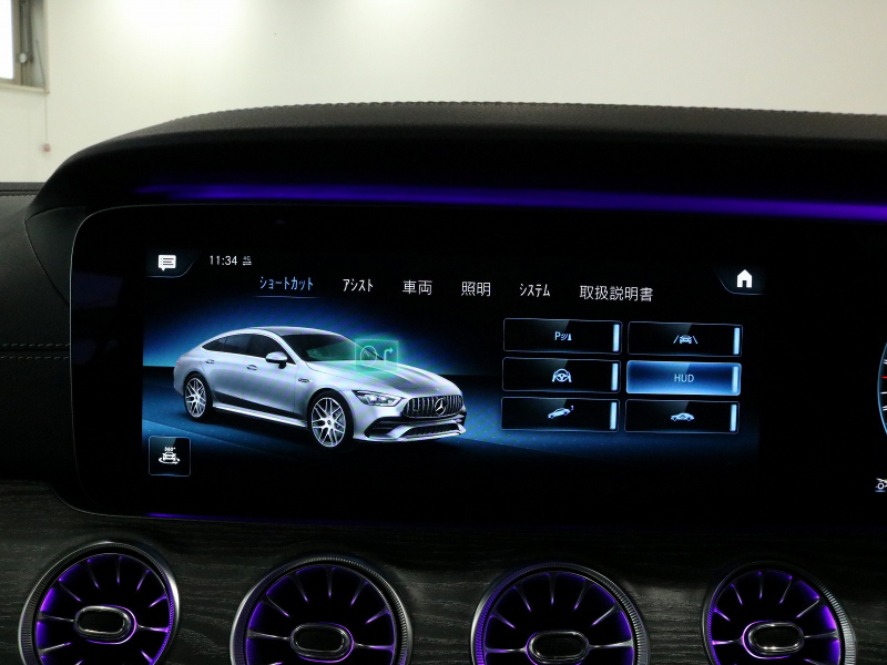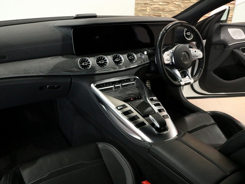 AMG GT 4ドアクーペ GT43 4MATIC+(ISG搭載モデル) エクスクルーシブPKG 右H正規D車 パノラミックR 黒革 シートヒーター&ベンチレーター MBUX搭載純正ナビ Burmesterサウンド 全周カメラ&PTS HUD&レーダーセーフティPKG 純正19インチAW 禁煙