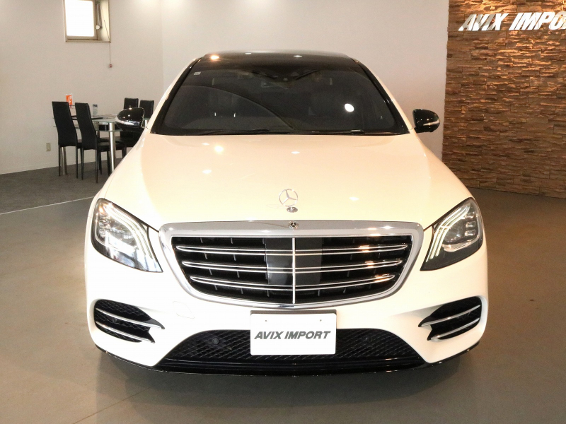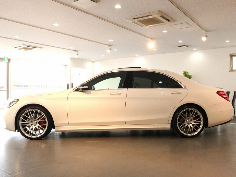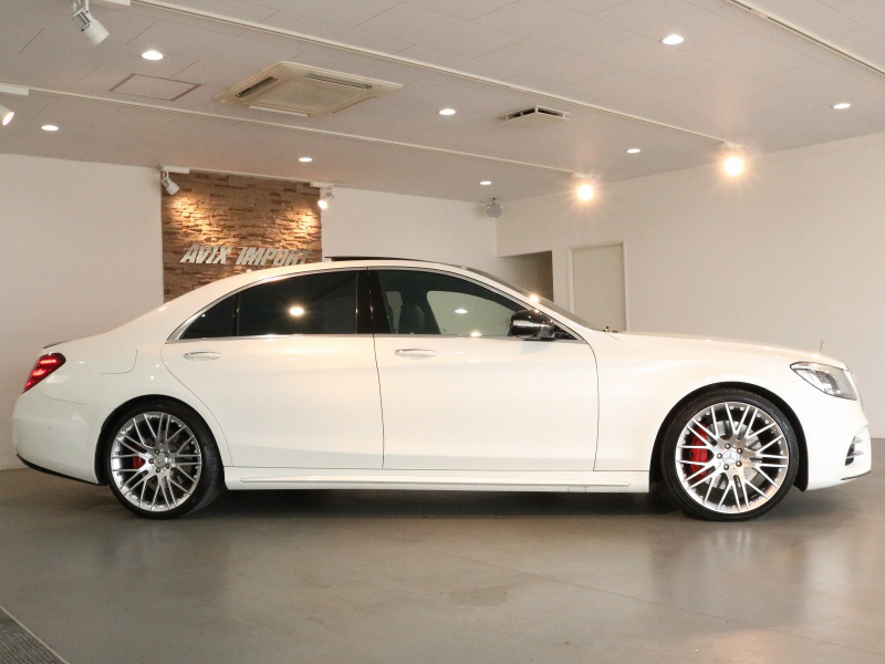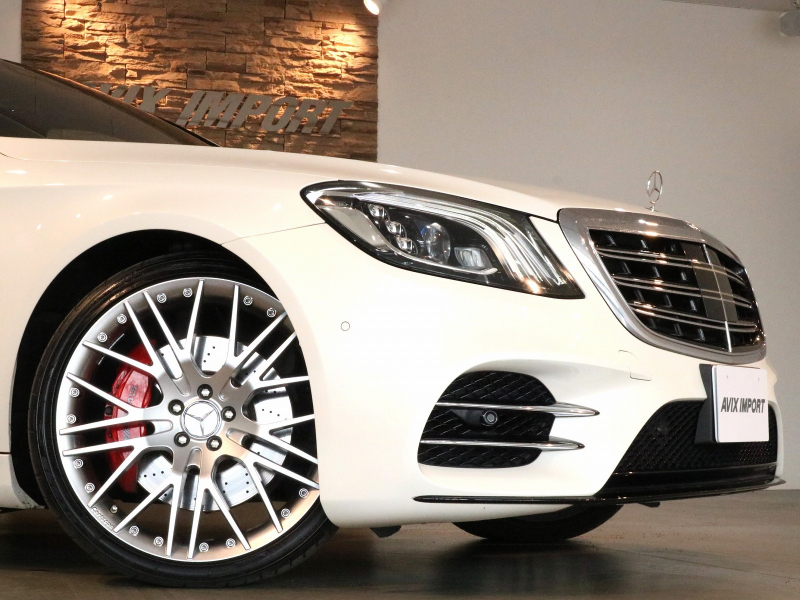 安心の右ハンドル、正規ディーラー車!! 取説・記録簿付 事故歴ありません!! 綺麗な外装色ダイヤモンドホワイトにAMGライン専用エクステリア&Carlsson製21インチアルミホイール、さらにはレッドペイントブレーキキャリパーや社外トランクリッドスポイラーが装着されお洒落なエクステリアを演出!! 使用感はとても少なくロングボディならではの広々とした室内は高級感漂うブラックナッパレザーシート(ドライビングダイナミックシート・リラクゼーション機能付)にパノラミックスライディングルーフや全席シートヒーター&ベンチレーター、4ゾーンエアコン、Burmesterサウンドシステム、さらにはショーファーパッケージならではのリアエンターテイメントシステム、各アームレストヒーター、フットレスト付エグゼクティブリアシート上級サルーンに相応しい同乗者も快適なドライビングをご堪能できます!! 使い勝手の良い純正HDDナビに360°カメラ&ヘッドアップディスプレイや運転操作をサポートするレーダーセーフティパッケージも装備!! 4L V型8気筒ツインターボエンジンと9G-TONICがフラッグシップサルーンに相応しい走行性、環境・燃費性能を実現しています!! 実用性と先進性を兼ね揃えた人気車輌をお届け致します!!