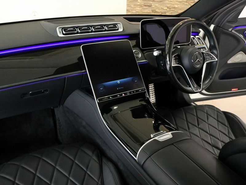 メルセデスベンツ Sクラス S500 4MATIC(ISG搭載モデル) AMGライン レザーEXC-PKG 右H正規D車 パノラミックR 黒革 シートヒーター&ベンチレーター 12.8インチ有機ELディスプレイ(MBUXナビ) Burmester3Dサウンド 全周カメラ&PTS HUD&レーダーセーフティPKG 3Dコックピット 純正20AW 禁煙