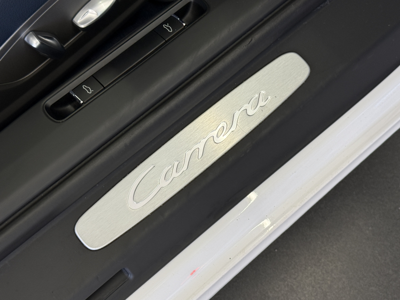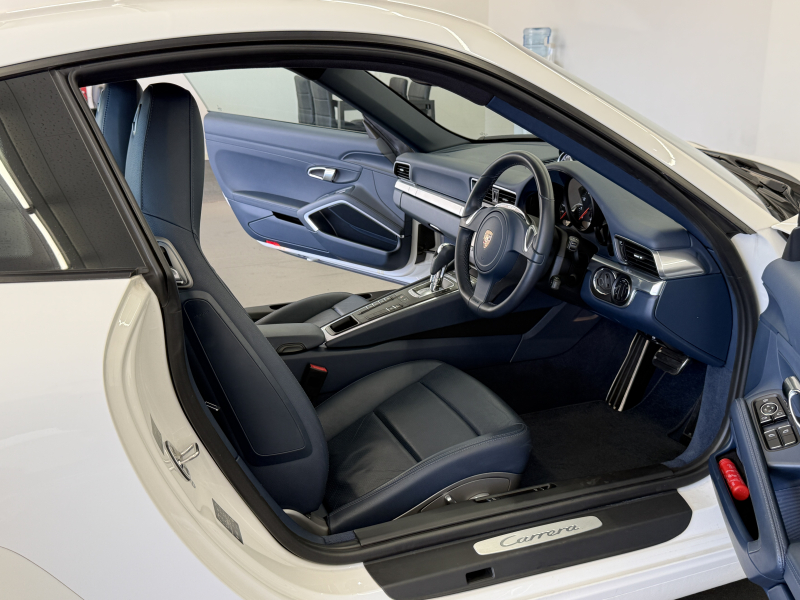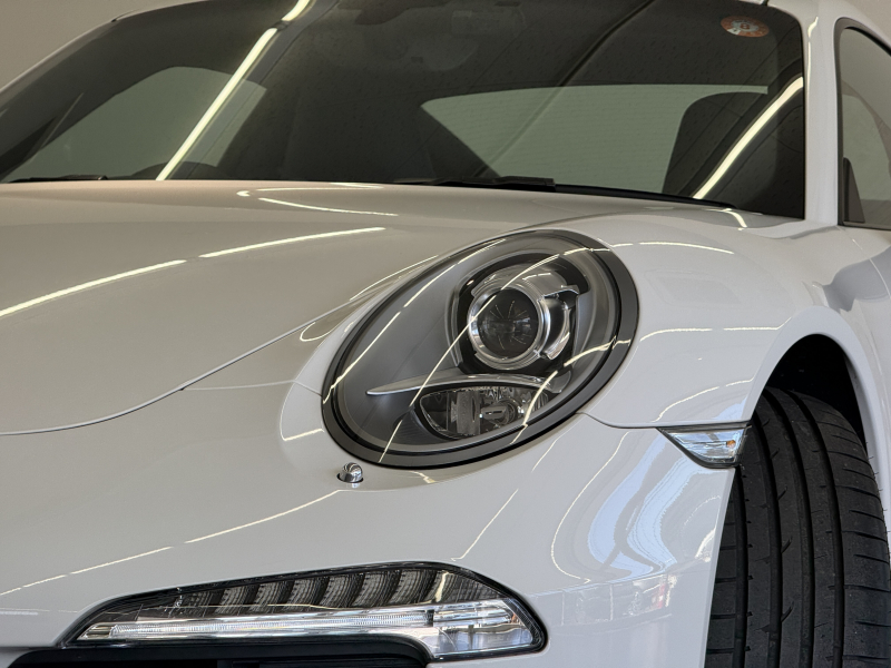 安心の正規ディーラー車!! 運転しやすい運転し易い右ハンドル&7速PDK搭載!! もちろん事故歴ありません!! 人気の外装色ホワイトにシングルチューブツインエグゾーストテールパイプ&純正19インチアルミホイールがお洒落なエクステリアを演出!! 心地よい禁煙の室内はハイセンスなヨッティングブルーレザーインテリア&セミパワーシートに便利な電動可倒式ミラー、運転操作をサポートするリアビューカメラや夜間の運転をサポートするキセノンヘッドライトも装備され、純正SDナビ・CD(ミュージックサーバー)・地デジ・ETC装備!! 先代モデルからダウンサイジングしたものの350psを発生する水平対向6気筒エンジン&スポーツクロノパッケージがストレスの無いドライビングを可能とし、アイドリングストップ機能も装備され燃費においても経済的でおすすめです!! 911をお探しの方は是非お急ぎ下さい!!
