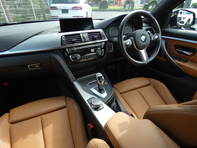 洗練された後期型!! ワンオーナー 取説・記録簿付 事故歴ありません!! 重厚感ある外装色ミネラルグレーに人気のMスポーツ専用エクステリア&純正オプション19インチアルミホイール、後期型ならではのヘキサゴナルデザインのアダプティブLEDヘッドライトが迫力有るエクステリアを演出!! 使用感はとても少なく室内は鮮やかなコニャックレザーシート(グランクーペ専用カラー)に快適なシートヒーターが装備!! タッチパッド付アイドライブナビに見やすいマルチディスプレイメーター、便利なコンフォートアクセス&オートマチックテールゲート、運転操作をサポートするパークディスタンスコントロールやACC(アクティブクルーズコントロール)&LCW(レーンチェンジアシスト)、さらにはドライビングアシストも完備!! DOHC 直列4気筒ツインパワーターボエンジンにMスポーツサスペンションが相まって言葉に尽くせないドライビングの醍醐味を堪能することができます!! F36後期型をお探しの方は是非ご覧下さい!!