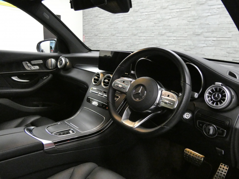 メルセデスベンツ GLC GLC220d 4MATIC AMGライン 後期型 レザーEXC-PKG パノラミックR 黒革 シートヒーター&ベンチレーター 純正ナビ(10.25インチディスプレイ/MBUX搭載) Burmester 全周カメラ&PTS HUD&レーダーセーフティPKG マルチビームLED 12.3インチコックピットD エアサス 社外グリル 純正19AW 禁煙
