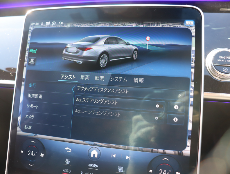 ●AIRマティックサスペンション ●リア・アスクルステアリング ●マルチファンクションステアリング(パドルシフト付) ●ダイレクトステアリング ●DIRECT SELECT(ダイレクトセレクト) ●クルーズコントロール&可変スピードリミッター ●電動パワーステアリング ●電動チルト&テレススコピックステアリング ●ボタン式パーキングブレーキ ●イージーエントリー[ステアリング・シート] ●電動調整・可倒式ヒーテッド・ドアミラー(ウインカー・足元照明内蔵) ●リバースポジション機能付ドアミラー[助手席側] ●自動防眩ルームミラー&ドアミラー[運転席側] ●12.3インチコックピットディスプレイ[メーターパネル] ●ヘッドアップディスプレイ ●レインセンサー ●オートライト ●外気温度計 ●ワンタッチパワーウィンドウ(挟み込み防止機能付) ●照明ミラー付サンバイザー ●カップホルダー ●コンパートメントボックス[後席中央] ●シートバックポケット ●イルミネーテッドステップカバー[前席] ●乗降用ライト ●12V電源ソケット[前席・トランクルーム] ●アンビエントライト(64色) ●リーディングライト[後席] ●リモート・トランクリリース ●フットトランクオープナー ●キーレススタート ●キーレスゴー ●イモビライザー ●自動開閉トランクリッド ●クロージングサポーター[ドア・トランクリッド] ●ECOスタートストップ機能 ●バレーパーキング機能 ●ワイヤレスチャージング[前席] ●タイヤフィットキット