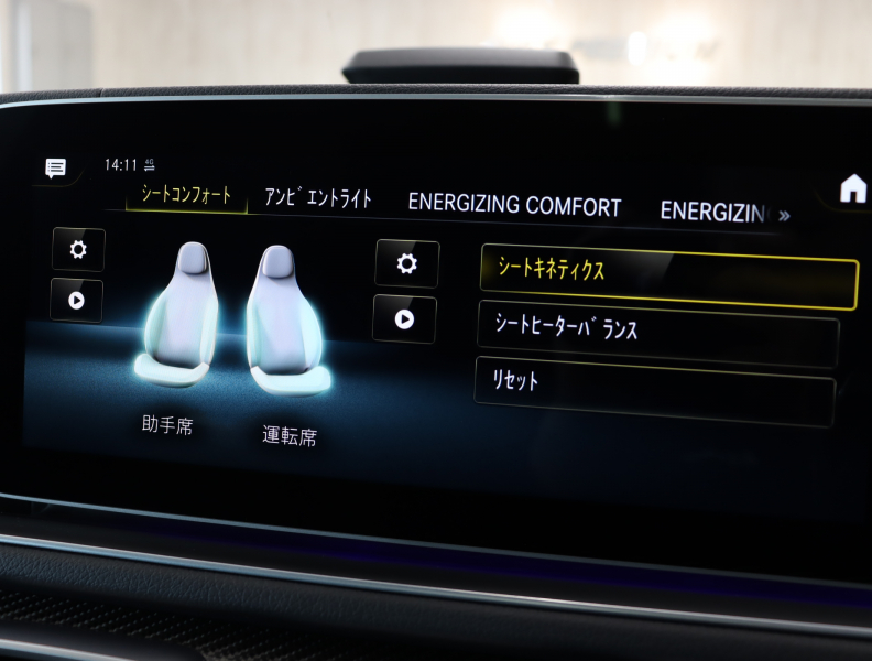 ●MBUX(メルセデス・ベンツ ユーザーエクスペリエンス)12.3インチワイドディスプレイ(タッチスクリーン) 12.3インチコックピッドディスプレイ[メーターパネル] タッチコントロールボタン、リストレスト付タッチパッド 携帯電話ハンズフリー機能(Bluetooth携帯電話対応) 自然対話式音声認識機能 ナビゲーション機能:ナビゲーション、VICS3メディア オーディオ/ビジュアル機能:AM/FMラジオ(ワイドFM対応)、Bluetoothオーディオ機能 メディアインターフェース(USB Type-C) ハイレゾ音源対応(FLAC)テレビ機能(12セグ/ワンセグ自動切替) ETC2.0対応車載器 ワイヤレスチャージング[センターコンソール] デジタルオーナーズマニュアル●Burmesterサラウンドサウンドシステム(スピーカー数:13)