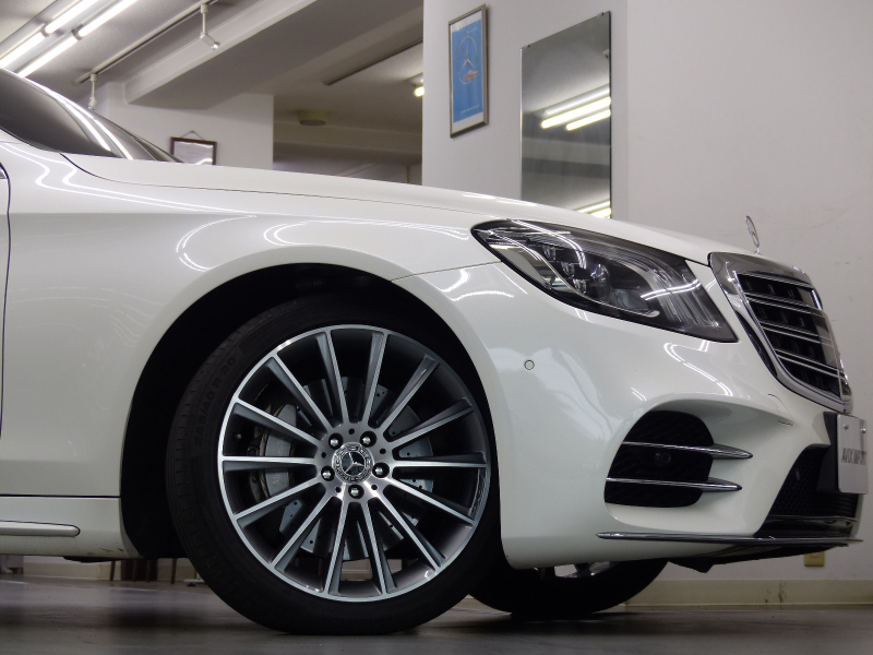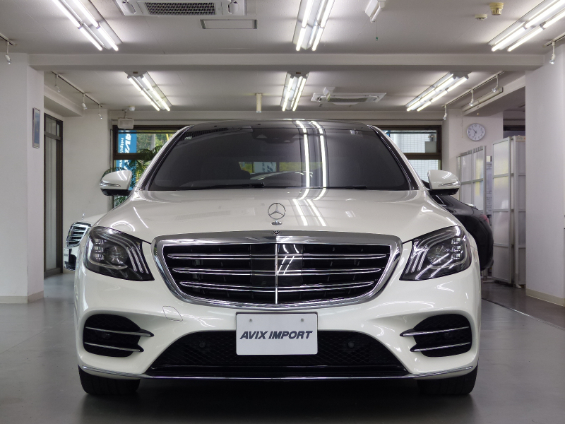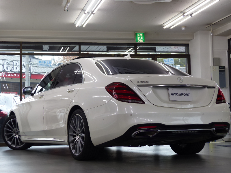 緊急通報サービスやスマートフォンによるリモートドアロック&アンロック・駐車位置検索を含むMercedes me connect搭載車!! 専門店ならではの1台!! W222最終型に設定された特別仕様車グランドエディション・スポーツリミテッド!! 禁煙車 取説・記録簿付き もちろん修復歴御座いません!! 外装色は綺麗なダイヤモンドホワイト!! 特別仕様車スポーツリミテッドならではのAMGスタイリングフロントスポイラー・サイド&リアスカート・Mercedes-Benzロゴ付ブレーキキャリパー・20インチAMGマルチスポークアルミホイールがスタイリッシュかつスポーティーなエクステリアを演出!! 内装は高級感のあるブラックナッパレザーシート&ブラックハイグロスポプラウッドパネルの組み合わせ!! 最高出力469PS(カタログ値)を発生する新開発4L V型8気筒ツインターボエンジンを搭載!! 低負荷での走行の際に4気筒を休止する機能により燃料消費量とCO2排出量を抑制するシリンダーマネジメントシステム&最新鋭9速オートマティック(9G-TRONIC)&ECOスタートストップシステムが、Sクラスにふさわしい走行性を発揮しつつかつてない環境性能を実現しています!! 機能装備についてもW222より12.3インチ大型TFTカラーディスプレイがメーター表示部とナビ表示部に2台設置!! メルセデスが先進技術を投入した安全支援システム・レーダーセーフティーパッケージに、アクティブレーンチェンジングアシスト等の新たな機能が加わり、安全運転を全面的にサポートし事故を未然に防いでくれます!! 便利な360度カメラシステムや自動開閉トランクリッド、ハンズフリーアクセスの他、上級グレードS560ロングならではのベーシックパッケージ(パノラミックスライディングルーフ・クロージングサポーター・前席シートベンチレーター・後席シートヒーター・エアバランスパッケージ)やレザーエクスクルーシブパッケージ(Burmesterサラウンドサウンドシステム・リラクゼーション機能・シートヒータープラス・マルチコントロールシートバック・ドライビングダイナミックシート)等が標準装備されており、Sクラスに相応しい豪華装備充実の一台です!! さらには後席メモリー付パワーシート&シートベンチレーターの他、スポーツリミテッドならではのヘッドアップディスプレイも装備!! 内・外装共にとても綺麗でもちろん機関も良好!! 全てにおいて洗練されたW222後期最終型 特別仕様車S560ロング スポーツリミテッドをお探しの方是非ともこの機会をお見逃し無く!!