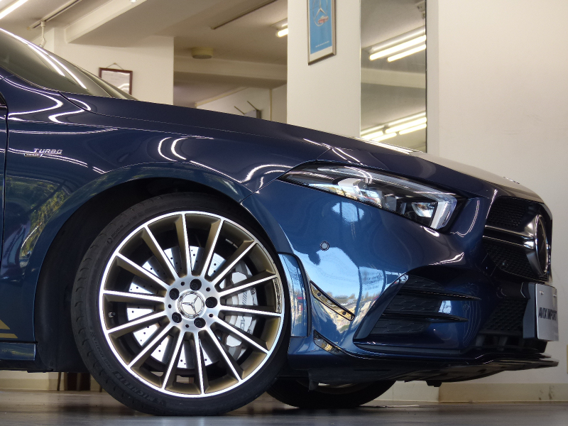 緊急通報システムやスマートフォンで操作するリモートパーキングアシストを含むMercedes me connect搭載!! 専門店ならではの1台!! A35 4MATICをベースに特別仕様を施したエディション1!! 特別限定600台!! 安心の右ハンドル!! 禁煙車 取説・記録簿付き もちろん修復歴御座いません!! A35 4MATICならではのAMGフロントスポイラー・サイド&リアスカート・AMGエグゾーストシステムをベースに、特別仕様車ならではのAMGナイトパッケージ(ハイグロスフロントスプリッター&フロントバンパー&サイドスカート&エグゾーストエンド等)やエアロダイナミックパッケージ(エディション1専用フロントバンパー・ハイグロスブラックリアウィング&リアエプロン&リアディフューザー)・ハイシーン/マットテックゴールド19インチAMGマルチスポークアルミホイールがダイナミックなスタイリングを演出!! 最高出力306PS(カタログ値)を発生する2リッター DOHC直列4気筒直噴ターボエンジンを搭載したモンスターマシン!! さらにはメルセデスが数々の新技術を採用した新開発の電子制御7速AT(7G-DCT)を、Mercedes-AMG用に最適化した専用7G-DCTを搭載し、ダイナミックで快適な走りを実現!! 大出力に対応すべくAMGサスペンションや専用強化ブレーキシステム等が装備され、圧倒的なパフォーマンスを最大限に引き出して走る歓びを叶えます!! 外装色は綺麗なデニムブルー!! 内装はエディション1ならではの上質なマグマグレー/ブラックレザーDINAMICA AMGパフォーマンスシート&アルミニウムシルバー/ブラックインテリアトリムの組み合わせ!! 前席にシートヒーターが装備され、快適なドライビングが可能となります!! ライト機能も高解像度・高精度のアダプティブハイビームアシストプラス付マルチビームLEDヘッドライトが標準装備!! また室内も視認性に優れた一体型デザインの高精細な2枚のタッチスクリーン付10.25インチワイドディスプレイを採用!! メルセデスが先進技術を投入した安全支援システム・レーダーセーフティーパッケージにアクティブレーンチェンジングアシスト等の新たな機能が加わり、安全運転を全面的にサポートし事故を未然に防いでくれます!! 便利なメモリ付パワーシート、キーレスゴーの他、エディション1ならではの360度カメラシステム・ヘッドアップディスプレイ・AMGパフォーマンスステアリング・アドバンスドサウンドシステム等、豪華装備充実の1台!! 内・外装共にとても綺麗で機関も良好!! 憧れを憧れだけで終わらせないで下さい!! 是非ともこの機会に本物のAMGオーナーに!!