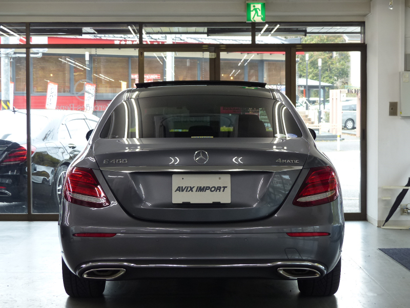 緊急通報サービスやスマートフォンによるリモートドアロック&アンロック・駐車位置検索を含むMercedes me connect搭載車!! 専門店ならではの1台!! 禁煙車 取説・記録簿付き もちろん修復歴御座いません!! メルセデスが先進技術を投入した新開発の3.5L V型6気筒ツインターボBlueDIRECTエンジン&最新鋭9速オートマティック(9G-TRONIC)&フルタイム四輪駆動4MATICを採用!! ECOスタートストップ機能(アイドリングストップ)により燃費向上を実現!! さらにはAIR BODY CONTROLサスペンションが標準装備されており、快適性と俊敏性を高いレベルで両立しております!! 外装色は綺麗なセレナイトグレー!! 内装は上級グレードならではの高級感漂うブラックナッパレザーシート&ブラウンアッシュウッドインテリアトリム(マット)の組み合わせ!! 前席はもちろんの事、後席にもシートヒーターが装備されドライバーも同乗者も快適なドライビングが可能となります!! W213より一体型デザインの高精細な2枚の12.3インチワイドディスプレイを採用!! 快適装備のメモリー付パワーシートや分割可倒式シート、キーレスゴー、便利な360度カメラの他、2018年モデルならではのヘッドアップディスプレイが標準装備となっております!! セーフティーにおきましては、インテリジェントライトシステムを搭載したマルチビームLEDヘッドライト・アダプティブハイビームアシストプラス・アテンションアシスト・パーキングパイロットが装備!! またメルセデスが先進技術を投入した安全支援システム・レーダーセーフティーパッケージに、アクティブレーンチェンジングアシスト等の新たな機能が加わり、安全運転を全面的にサポートし事故を未然に防いでくれます!! 上級グレードならではの便利な自動開閉トランクリッドやフットトランクオープナーはもちろんのこと、エクスクルーシブパッケージがオプション装備されておりますので、パノラミックスライディングルーフ・Burmesterサラウンドサウンドシステム・エアバランスパッケージの他、2018年モデルならではの快適なベンチレーター等、豪華装備充実の一台!! 内・外装共にとても綺麗で機関も良好!! 経済性と環境性の高いW213 稀少E400 4MATIC エクスクルーシブ エクスクルーシブパッケージをお探しの方、是非ご覧下さい!!