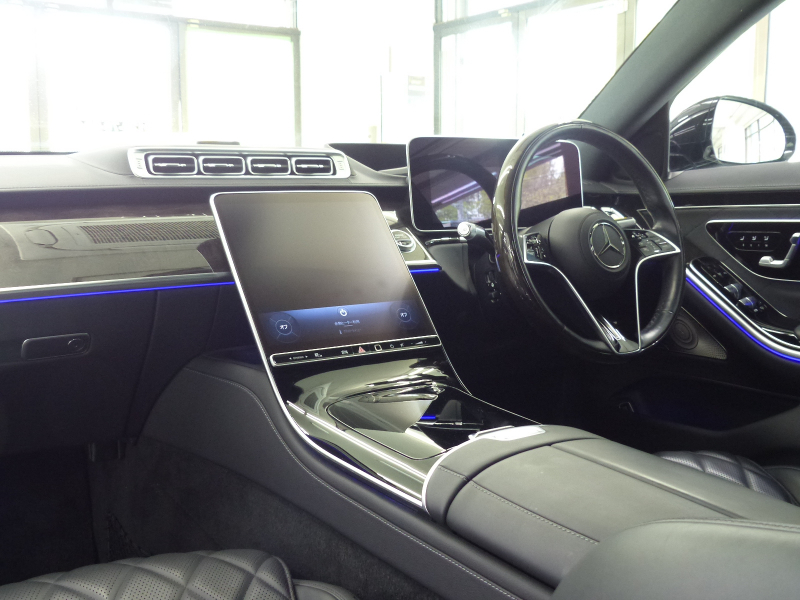緊急通報サービスやスマートフォンによるリモートドアロック&アンロック・駐車位置検索を含むMercedes me connect搭載車!! 専門店ならではの1台!! 安心の右ハンドル!! 禁煙車 取説・記録簿付き もちろん修復歴御座いません!! 現行型よりフロントエンドのヘッドライトには、Sクラスならではの3点が光るデイタイムドライビングライトを備え、最新のメルセデス・ベンツのスポーティモデル群に共通する、上下方向に薄くわずかに切れ上がるデザインを採用!! ラジエーターグリルは下部が広がる台形を採用し、シャープでダイナミックなエクステリアを演出!! 新世代ステアリングホイールを初採用した他、対話型インフォテインメントシステム「MBUX」や安全運転支援システムをメルセデス・ベンツの最新のシステムにアップデートするなど、安全性と快適性をさらに向上!! 外装色は人気のオブシディアンブラック!! AMGラインならではのAMGスタイリングフロントスポイラー・サイド&リアスカート・Mercedes-Benzロゴ付ブレーキキャリパー・20インチAMGマルチスポークアルミホイールがスタイリッシュかつスポーティーなエクステリアを演出!! 内装は高級感漂うブラックナッパレザーシート&ハイグロス・スレートポプラウッドパネルの組み合わせ!! 最高出力503PS(カタログ値)を発生する新開発4L V型8気筒ターボエンジン&インテグレーテッド・スターター・ジェネレーター(ISG)&最新鋭9速オートマティック(9G-TRONIC)&ECOスタートストップシステムが、Sクラスにふさわしい走行性を発揮しつつかつてない環境性能を実現しています!! 機能装備についても現行型より12.8インチの有機ELメディアディスプレイ&3Dコックピットディスプレイを搭載!! セーフティーにおきましては、ウルトラハイビーム付DIGITALライト・アダプティブハイビームアシストプラス・アテンションアシスト・アクティブパーキングアシストが装備!! メルセデスが先進技術を投入した安全支援システム・レーダーセーフティーパッケージに、アクティブレーンチェンジングアシスト等の新たな機能が加わり、安全運転を全面的にサポートし事故を未然に防いでくれます!! 便利な360度カメラシステムや自動開閉トランクリッド、フットトランクオープナーの他、リアアクスルステアリング・クロージングサポーターが標準装備されております!! さらには上級グレードS580 4マチックならではの後席メモリー付パワーシートや後席専用クライメートコントロールはもちろんの事、ベーシックパッケージ(パノラミックスライディングルーフ・アクティブアンビエントライト・前席シートベンチレーター・後席シートヒーター・エアバランスパッケージ等)やレザーエクスクルーシブパッケージ(Burmester 3Dサラウンドサウンドシステム・リラクゼーション機能・マルチコントロールシートバック・ドライビングダイナミックシート・ステアリングヒーター等)の他、オプションのリアコンフォートパッケージ(リアエンターテインメントシステム・サンプロテクションパッケージ・アクティブマルチコントロールシートバックパッケージ等)や3Dコックピットディスプレイ・ARヘッドアップディスプレイ等が装備されており、Sクラスに相応しい豪華装備充実の一台です!! 内・外装共にとても綺麗でもちろん機関も良好!! 全てにおいて洗練されたW223 S580 4マチックロング AMGライン リアコンフォート&レザーエクスクルーシブパッケージをお探しの方是非ともこの機会をお見逃し無く!!