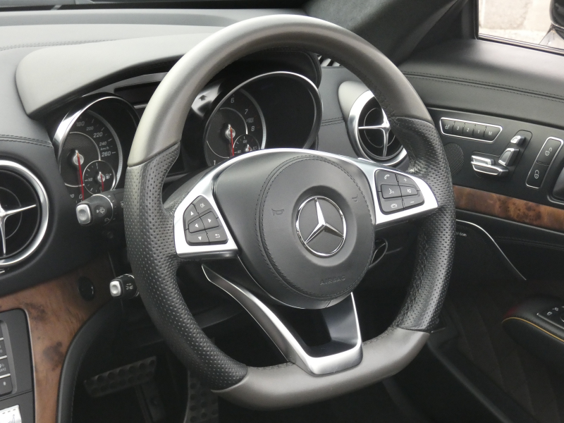 メルセデスベンツ SLクラス SL400 グランドエディション 右H 専用黒茶designoレザー ABCサス マジックスカイバリオルーフ パワーシート シートヒーター エアスカーフ ベンチレーション harman/kardon ナビ TV Bカメラ ACC LKA ステアリングアシスト LEDライト 専用19AW 禁煙