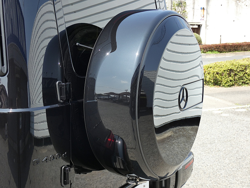 ブラックパーツ:ドアミラー フロントグリル サイドストリップライン ステンレス製スペアタイヤカバーリング スリーポインテッドスターエンブレム[フロント/リア] ルーフトップ フロントバンパー リアバンパー ホイールアーチ モデルエンブレム[リア]