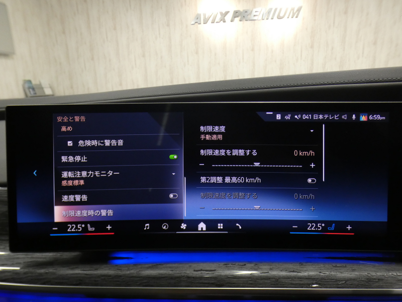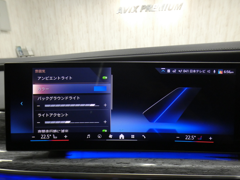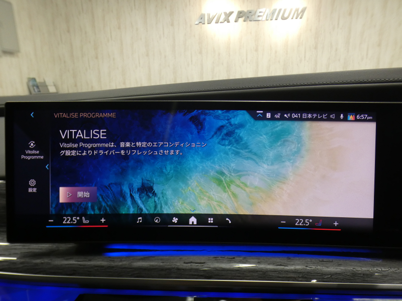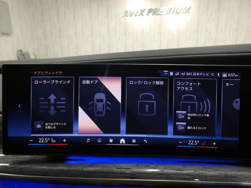 BMWライブ・コックピット(BMWカーブド・ディスプレイ、12.3インチ マルチ・ディスプレイ・メーター・パネル、14.9インチ ワイド・コントロール・ディスプレイ (タッチ・パネル機能付)、HDDナビゲーション・システム(VICS 3メディア対応)、BMWインテリジェント・パーソナル・アシスタント (AI音声会話システム))、ワイヤレス・チャージング、パーソナルeSIM、ハンズフリー・テレフォン・システム、ITSスポット対応DSRC車載器(ルーム・ミラー内蔵、ETC機能付)、電動式チルト&テレスコピック・ステアリング・コラム クラフテッド・クリスタル・フィニッシュ、アンビエント・ライト、BMWインタラクション・バー、オーディオ・ビジュアル・システム(地上デジタルTVチューナー)、USBオーディオ・インターフェイス、トラベル&コンフォート・システム(Type-C対応USBソケット(高速充電機能付))、4ゾーン・オートマチック・エア・コンディショナー (ナノ・ファイバー・フィルター〔花粉除去機能〕付)(運転席&助手席 独立温度調節機能 後席左右 独立温度調節機能 パーキング・ベンチレーション リモート・クライメート・コントロール機能)、シート(マルチファンクション・シート(運転席&助手席、メモリー機能付) アクティブ・ベンチレーション・シート(運転席&助手席)、マッサージ・シート(運転席&助手席)、シート・ヒーティング(フロント&リヤ))、スルーローディング・システム、センサテック・フィニッシュ・ダッシュボード、ベロア・フロア・マット、リーディング・ライト、リヤ・サイド・ウインドー・ローラー・ブラインド(電動)、クライメート・コンフォート・ガラス(赤外線反射ガラス:全面)、自動防眩ルーム・ミラー、照明付バニティ・ミラー(フロント)、照明付バニティ・ミラー(リヤ)、照明付グローブ・ボックス、ドア・シル・プレート、フロント・センター・アームレスト(収納ボックス付)、リヤ・センター・アームレスト(収納ボックス付)、カップ・ホルダー(フロント&リヤ)、ストレージ・パッケージ(Type-C対応USBソケット )
