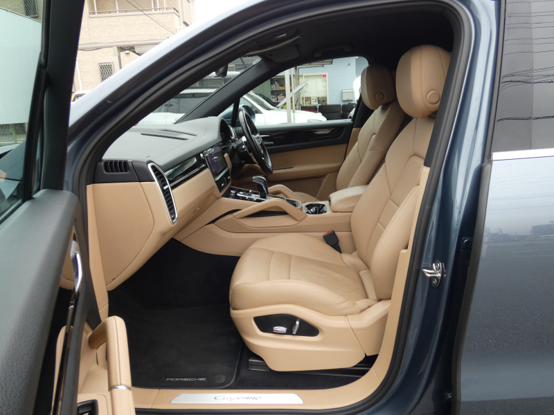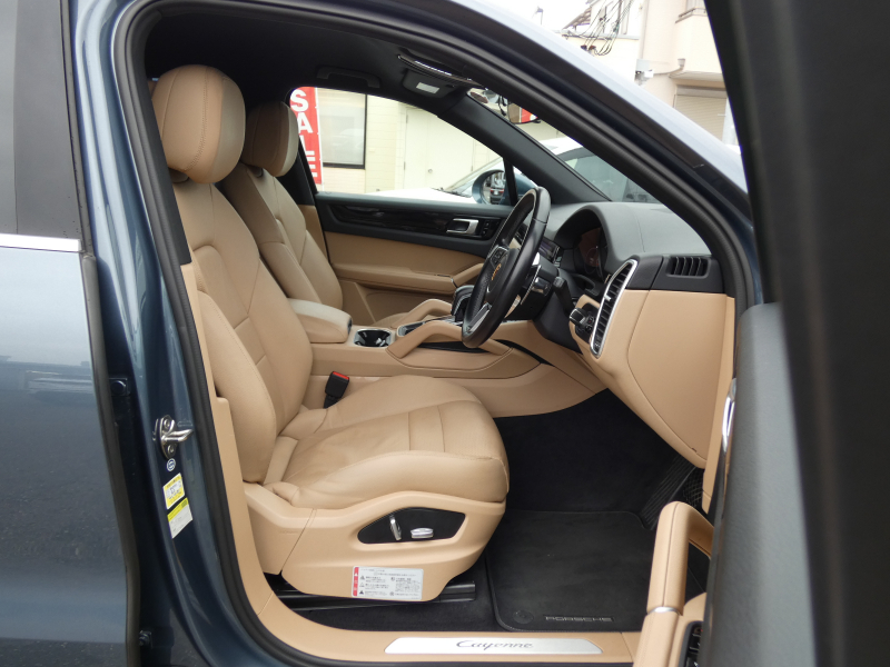 安心の右ハンドル、正規ディーラー車!! 取説・記録簿付 もちろん事故歴ありません!! 希少色ビスケーブルーメタリックにLEDヘッドライト&20インチカイエンデザインホイールが装備され迫力あるエクステリアを演出!! SUV特有の使用感はとても少なく心地良い禁煙の室内はお洒落なブラック/ルクソールベージュレザーインテリア!! 更に高解像度12.3インチタッチスクリーンを採用し、より一層使い勝手の良くなったPCMナビ(ポルシェコミュニケーションマネジメントシステム)を搭載しアップルカープレイ対応!! 便利なエントリー&ドライブシステム、オートマチックテールゲート、運転操作をサポートするサラウンドビュー付パークアシストシステム、ACC(アダプティブクルーズコントロール)装備!! 340馬力を発揮するV6ターボエンジンと8速ATが相まってストレスの無いドライビングを可能とします!! カイエンをお探しの方は是非お急ぎ下さい!!