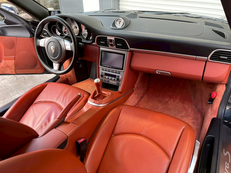 ポルシェ 911(Type997) カレラS 左H正規D車 6速MT スポーツクロノPKG テラコッタ/ブラックツートンレザーインテリア 社外ナビ地デジ Bカメラ ホワイトメーターパネル PASM 赤キャリパー 純正19インチAW