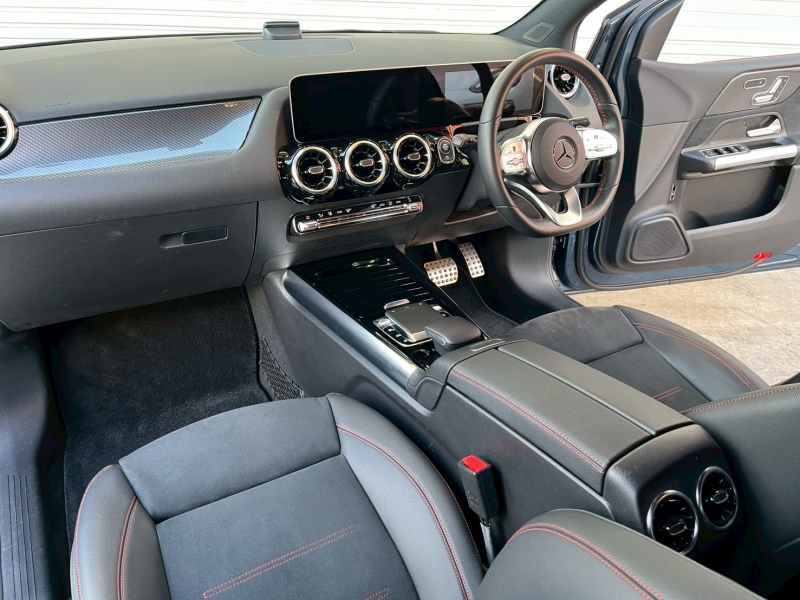 メルセデスベンツ Bクラス B180 AMGライン 正規D車 黒半革(赤ステッチ) シートヒーター 10.25インチディスプレイ(MBUX) 地デジ Bカメラ&PTS レーダーセーフティPKG キーレスゴー マルチビームLEDライト 電動Rゲート 純正18AW 禁煙