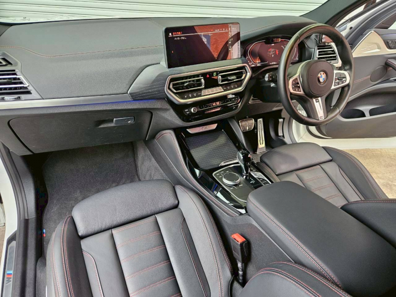 洗練された後期型!! 取説・記録簿付 事故歴ありません!! 綺麗な外装色アルピンホワイトにSUVでありながらクーペスタイルの美しいシルエットがエレガントなルックス!! 加えて後期専用エクステリア&Mスポーツ専用エクステリア&専用19インチアルミホイールが迫力あるエクステリアを演出!! SUV特有の使用感はとても少なく心地よい禁煙の室内は日常使いしやすいブラックレザーシート(レッドステッチ付)にウッドインテリア、さらにはパノラマサンルーフ・全席シートヒーター・ステアリングヒーター・ジェスチャーコントロール等が装備された豪華セレクトパッケージ!! 使い勝手の良いBMWコックピット(12.3インチワイドコントロールディスプレイ・純正HDDナビ)やコンフォートアクセス&オートマチックテールゲートも完備!! 運転操作をサポートするパーキングアシストプラス&ドライビングアシストプラスが安全運転を全面的にサポート!! DOHC直列4気筒ディーゼルターボエンジンが卓越したパワーとレスポンスを実現し電子制御8速AT&アイドリングストップ機構が燃費向上を実現!! G01後期型X3をお探しの方は是非お急ぎ下さい!!