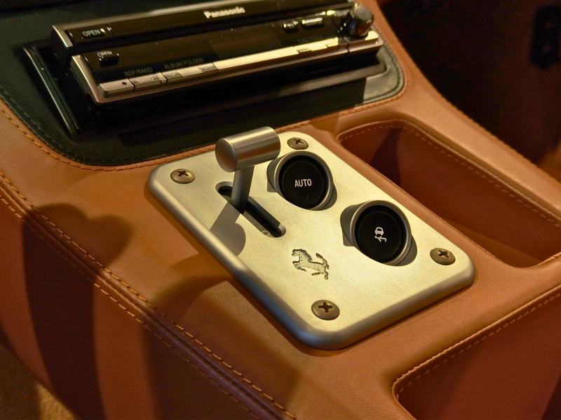 F355以来フェラーリで定番となったF1マチックは、従来のマニュアルとは異なり、クラッチペダルが無く、ステアリング奥のパドルシフトでの操作となり、