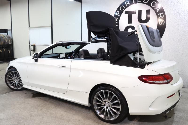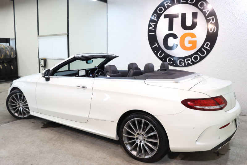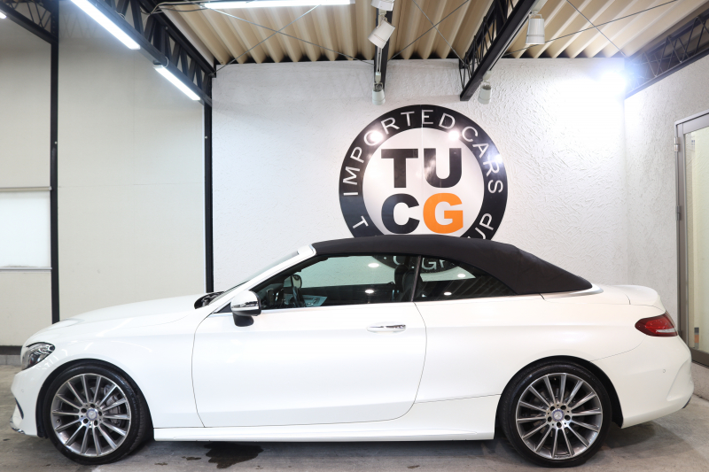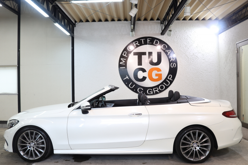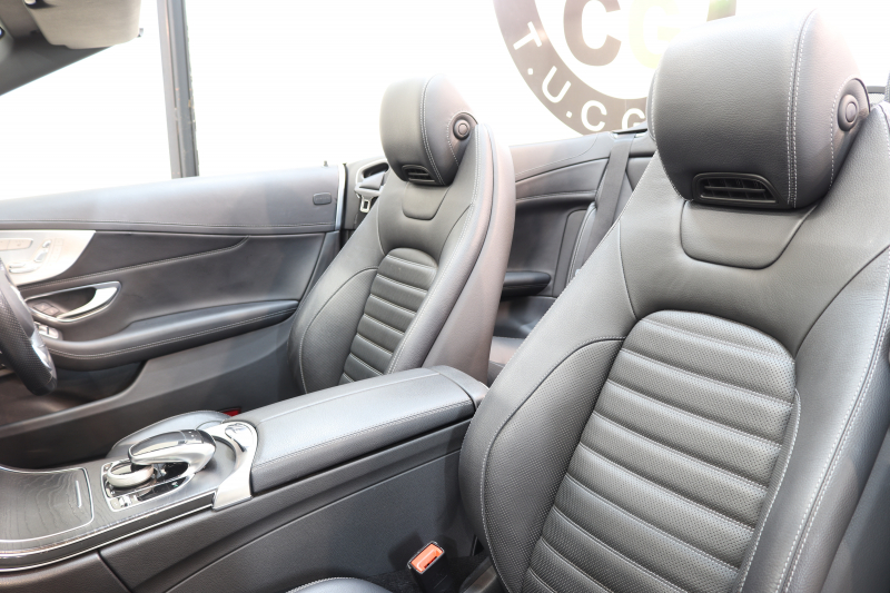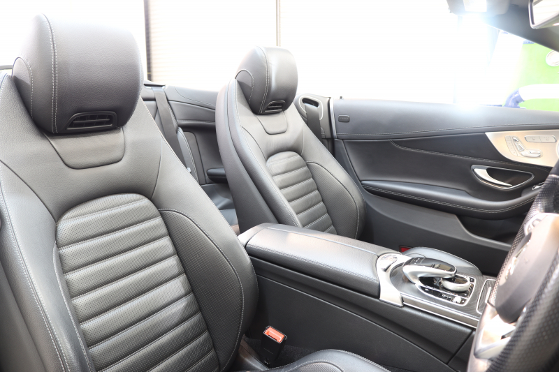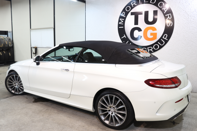 メルセデスベンツ Cクラス C180カブリオレ スポーツ レザーエクスクルーシブ&レーダーセーフティPKG キーレスゴー 黒本革 エアスカーフ HDDナビTV&キャンセラー BT音楽 バックカメラ PTS LEDライト AMGエアロ&19AW 黒幌 9AT 2年保証