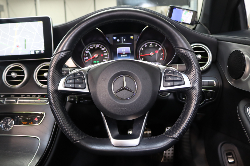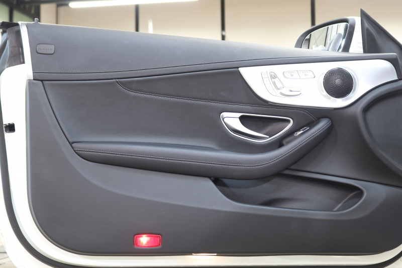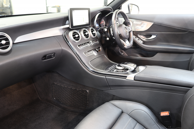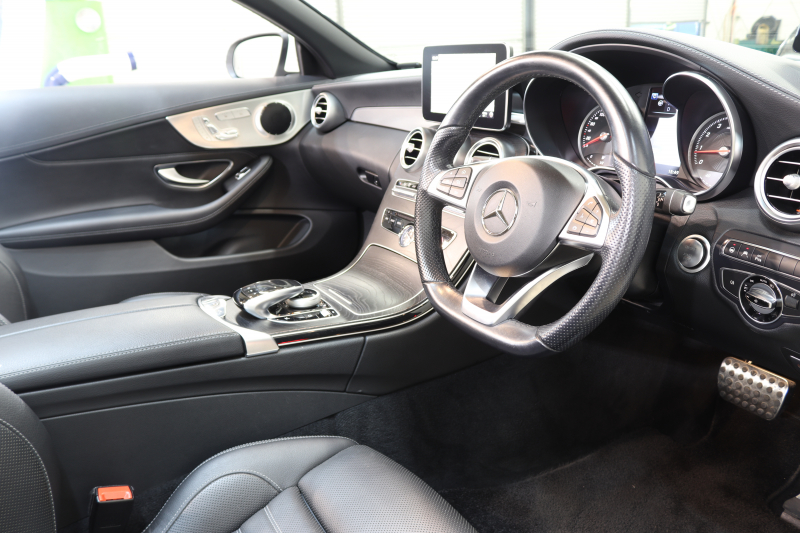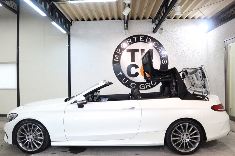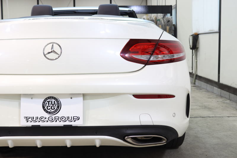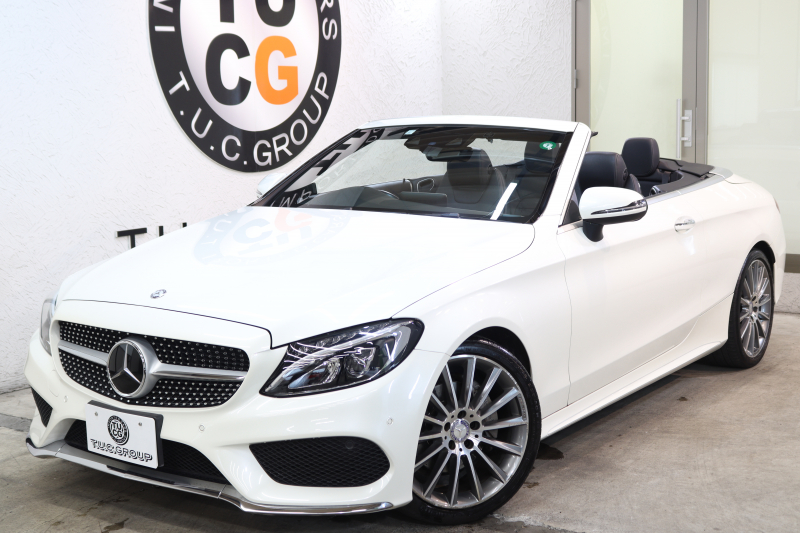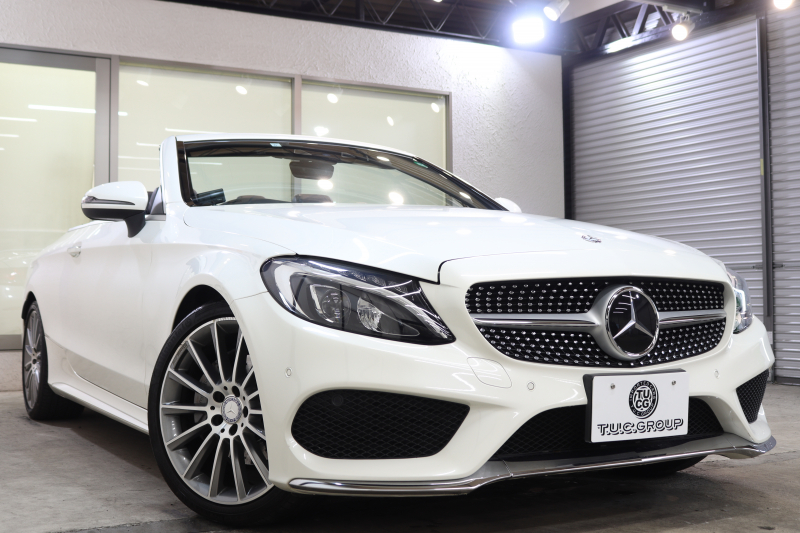 メルセデスベンツ Cクラス C180カブリオレ スポーツ レザーエクスクルーシブ&レーダーセーフティPKG キーレスゴー 黒本革 エアスカーフ HDDナビTV&キャンセラー BT音楽 バックカメラ PTS LEDライト AMGエアロ&19AW 黒幌 9AT 2年保証