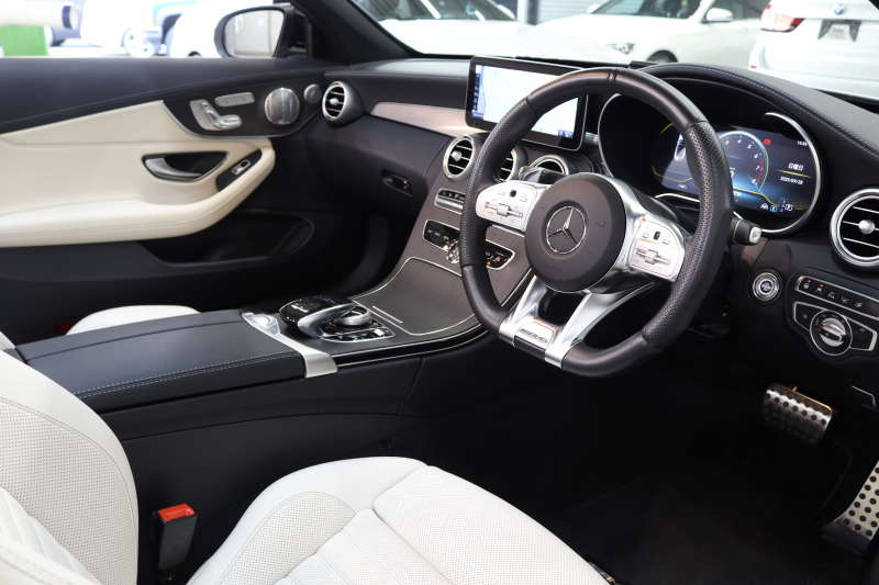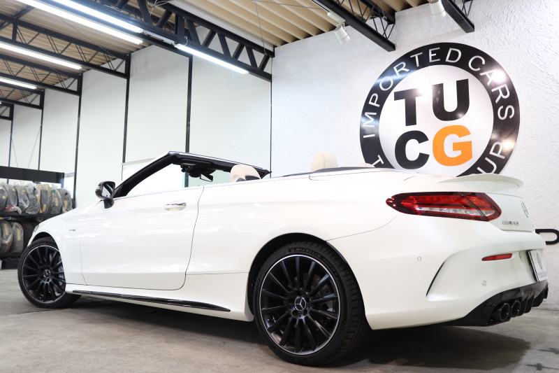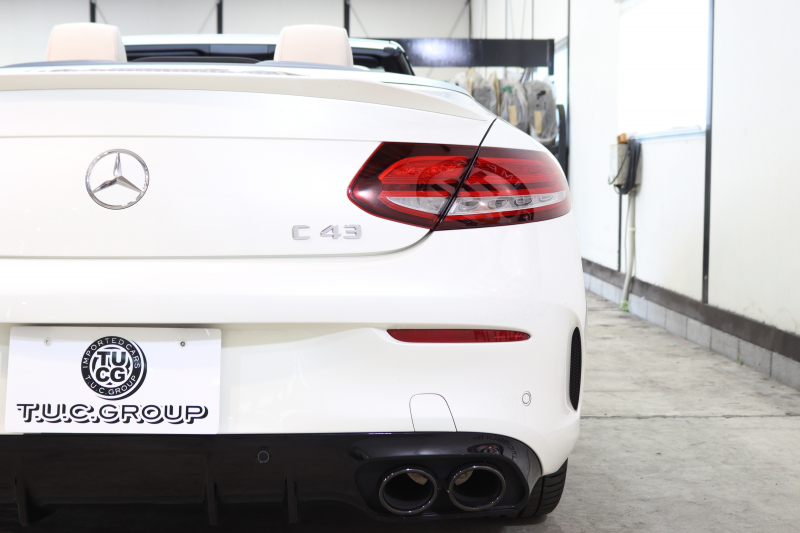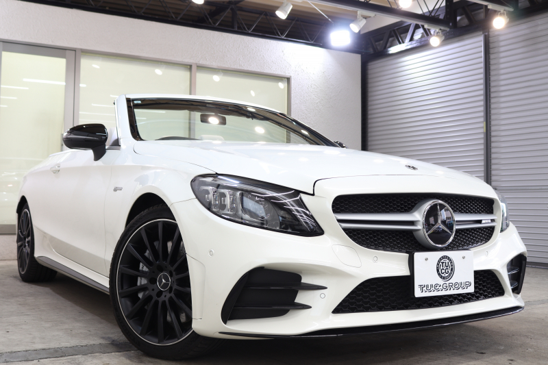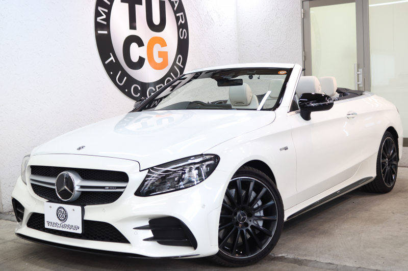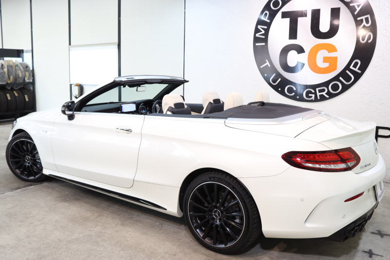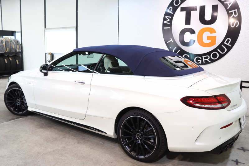 AMG Cクラス C43 4MATIC カブリオレ レーダーセーフティPKG 後期 キーレスゴー 白本革 エアスカーフ ヘッドアップD HDDナビTV スマホ連携 ブルメスター バックカメラ PTS LEDライト AMG専用装備&チューニングダイナミックS 青幌 9AT 2年保証