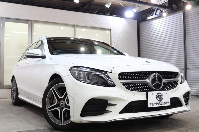 メルセデスベンツ Cクラス C200ステーションワゴン AVG AMGライン レザーエクスクルーシブ&レーダーセーフティPKG BSG搭載 後期 キーレスゴー 黒本革 パノラマSR ヘッドアップD HDDナビTV スマホ連携 ブルメスター バックカメラ PTS LEDライト 自動Rゲート ハンズフリーA AMGエアロ&18AW エアサス 9AT 2年保証