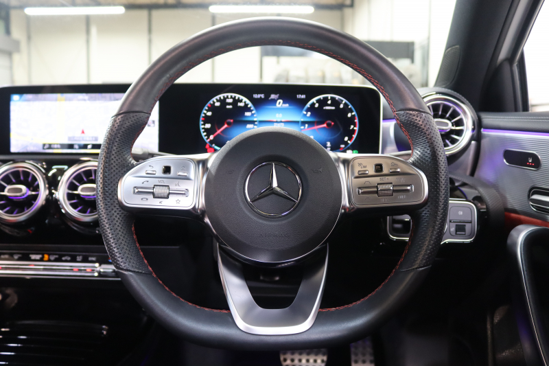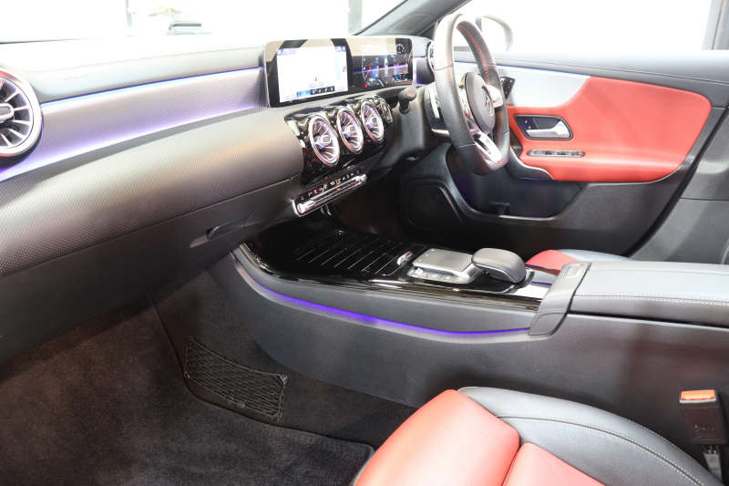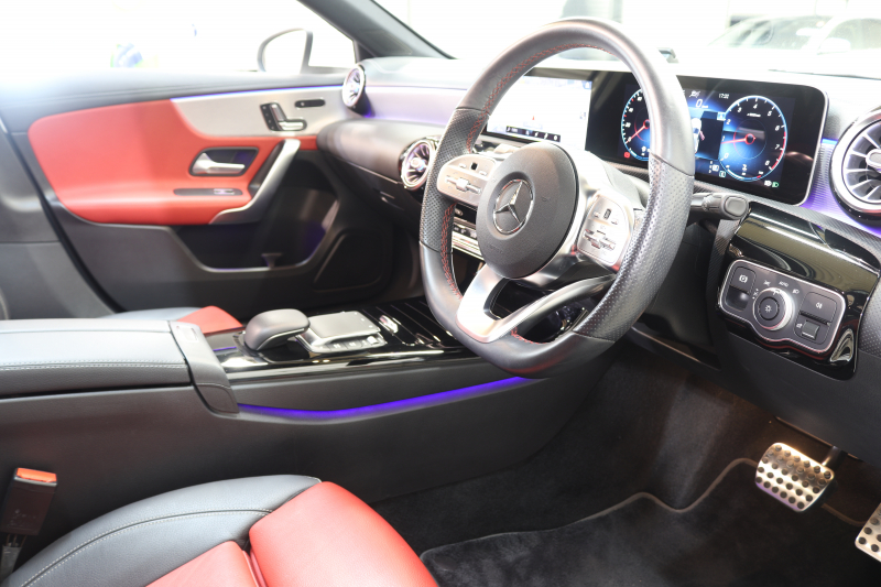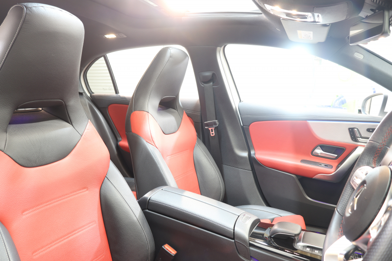 メルセデスベンツ Aクラス A180スタイル AMGライン AMGレザーエクスクルーシブ&ナビゲーション&レーダーセーフティPKG 1オーナー キーレスゴー 赤/黒本革 パノラマSR MBUXナビTV BT音楽 バックカメラ PTS LEDライト AMGエアロ&18AW ダイナミックセレクト ワイヤレス充電 7AT 2年保証