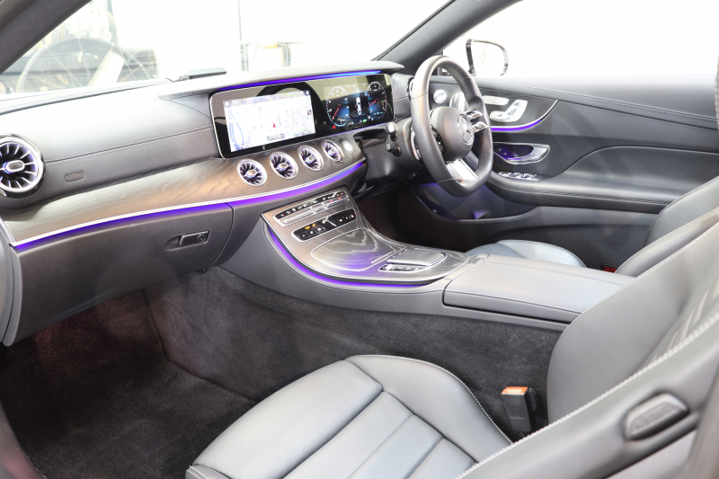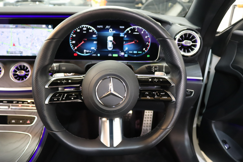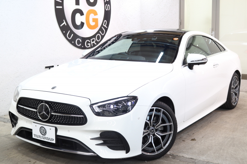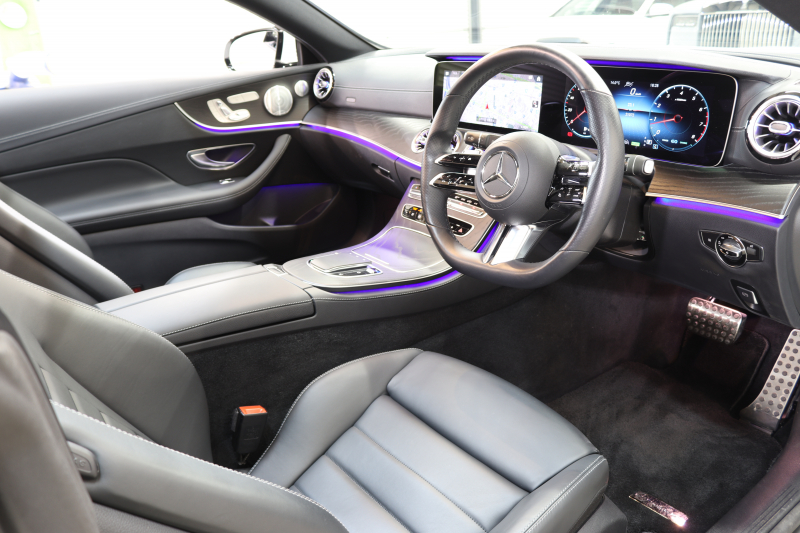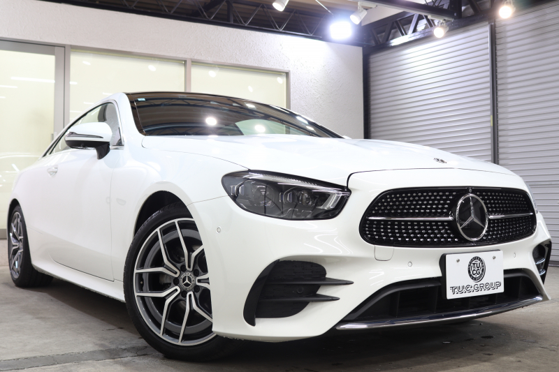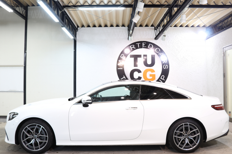 メルセデスベンツ Eクラス E200クーペ スポーツ レザー&レーダーセーフティPKG BSG搭載 後期 1オーナー キーレスゴー 黒本革 パノラマSR ヘッドアップD MBUXナビTV スマホ連携 ブルメスター 360カメラ PTS LEDライト AMGエアロ&19AW ダイナミックS 9AT 2年保証